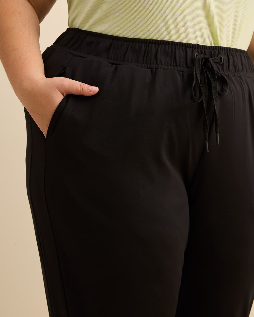 Bougez en tout confort avec ce pantalon de jogging noir taille plus conçu pour allier performance et assurance. Son tissu à séchage rapide qui évacue l'humidité offre une coupe flatteuse de longueur petite, idéale pour l'entraînement ou le quotidien.