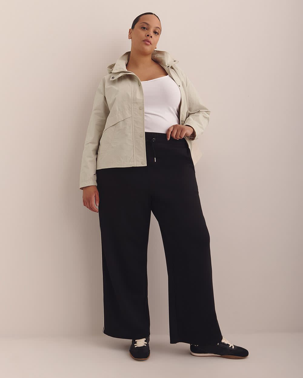 Pour un confort simple, enfilez ce pantalon de jogging doux taille plus qui s'agence à  merveille avec vos hauts et chandails à  capuche de sport. La taille élastique avec cordon de serrage assure un ajustement parfait, peu importe si vous êtes en mouvement ou en train de relaxer. Caractéristiques - Couleur unie - Taille haute - Jambe large - Détail passepoilé sur les côtés - Taille élastique à  cordon - Poches en biais - Entrejambe : 30 po À propos de Active Zone Bouger, c'est tendance! Maintenez un mode de vie actif tout en étant libre de vos mouvements avec les vêtements Active Zone. La parfaite combinaison entre confort et style.