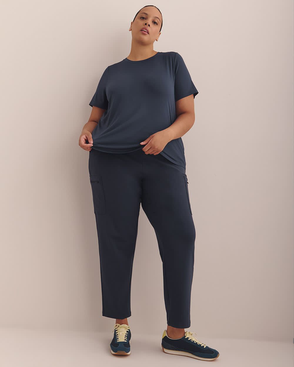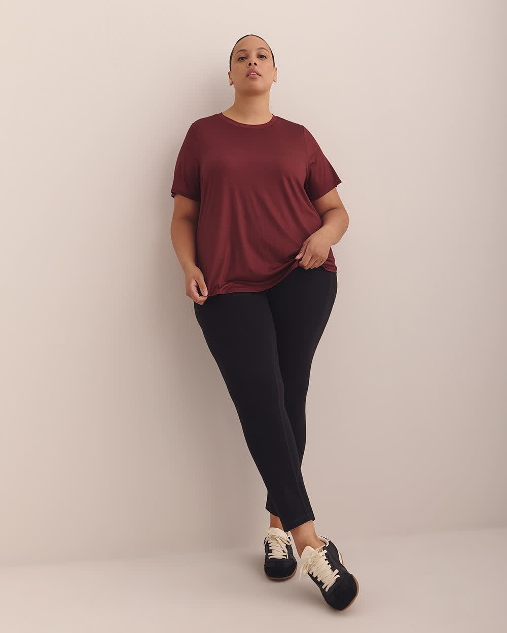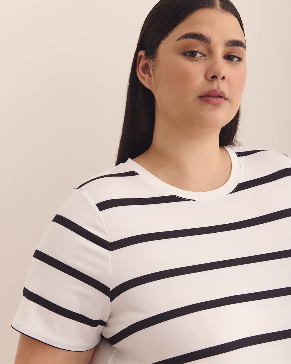 Passez de vos chandails sports classiques à un haut super tendance et parfait pour bouger! Ce t-shirt taille plus à manches courtes est aussi stylé que confortable avec son ourlet arrondi, son col rond et son style polyvalent.