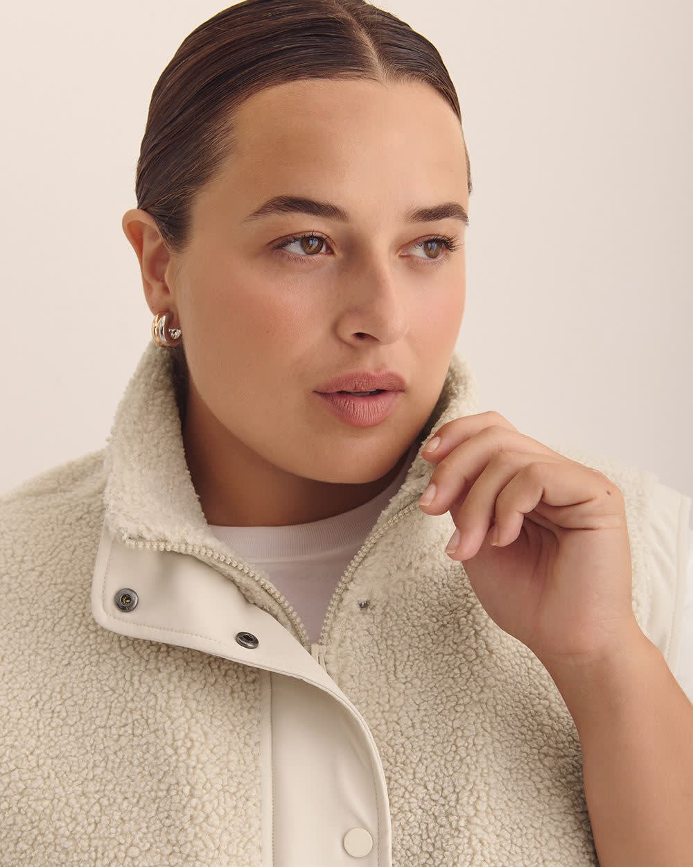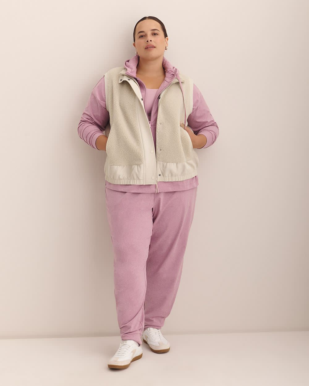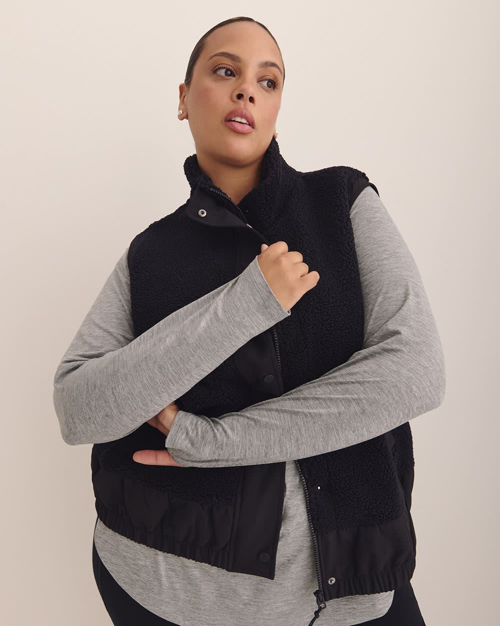Combinant un look athlétique et un fini chaud, cette veste sans manches taille plus est faite de sherpa douce avec un col montant, un devant à boutons-pressions et un ourlet extensible. Le par-dessus parfait où que vous vous rendiez cet automne.