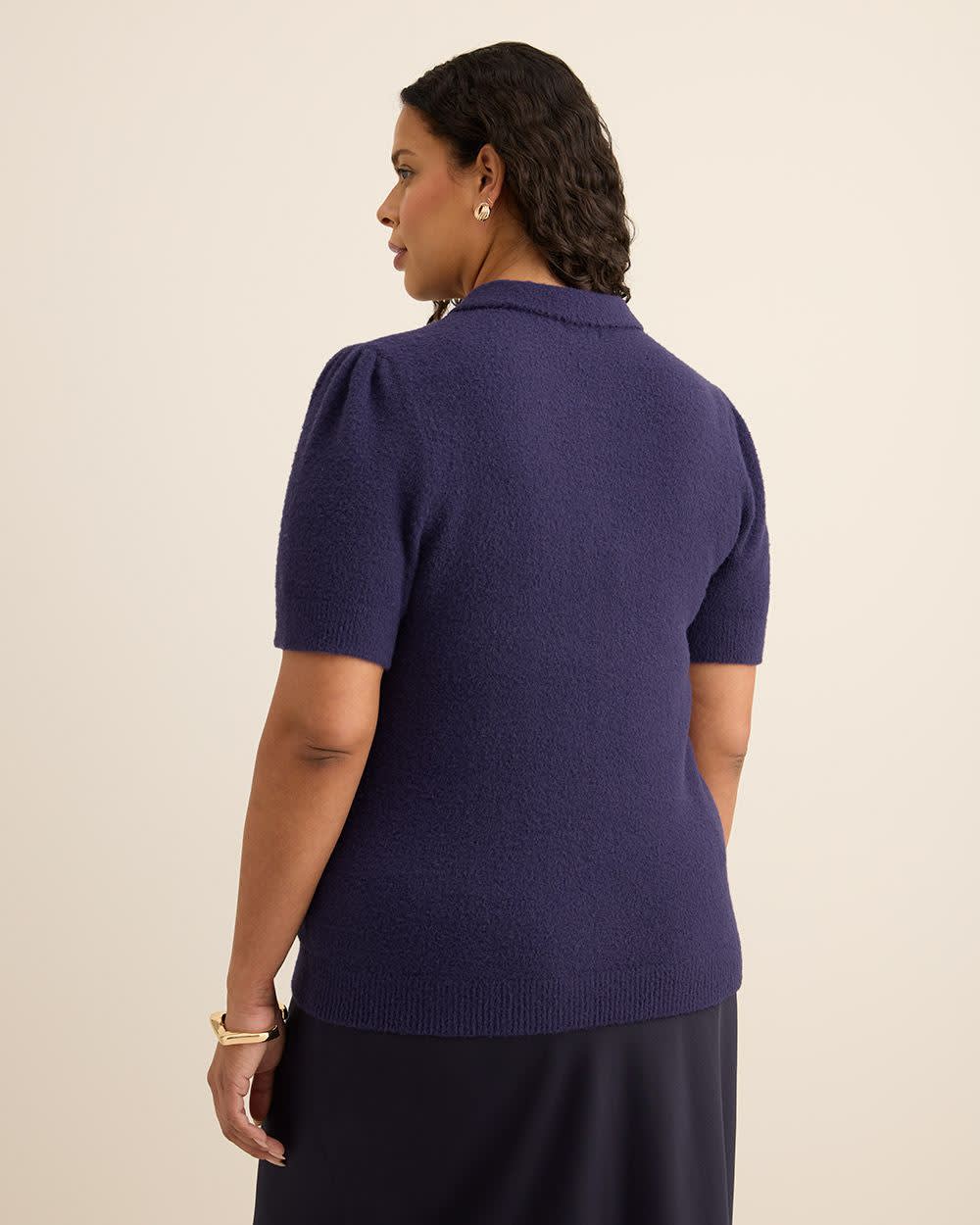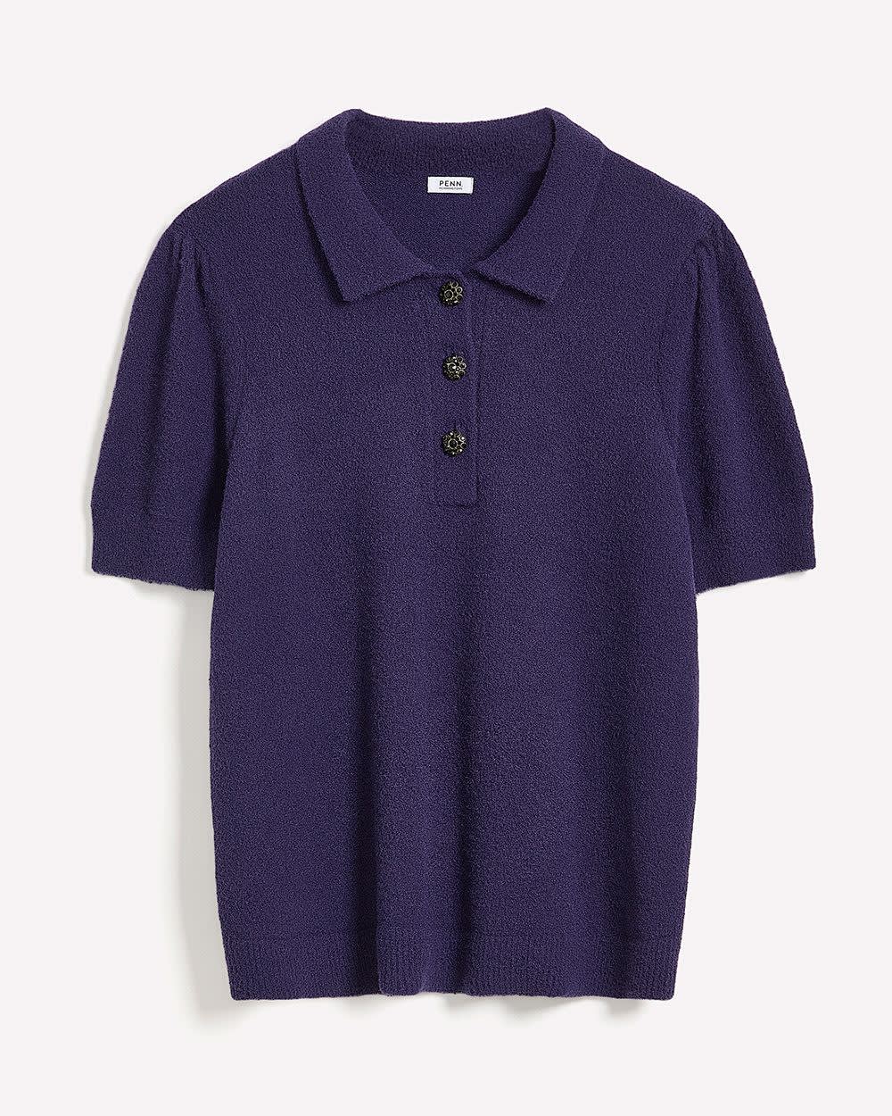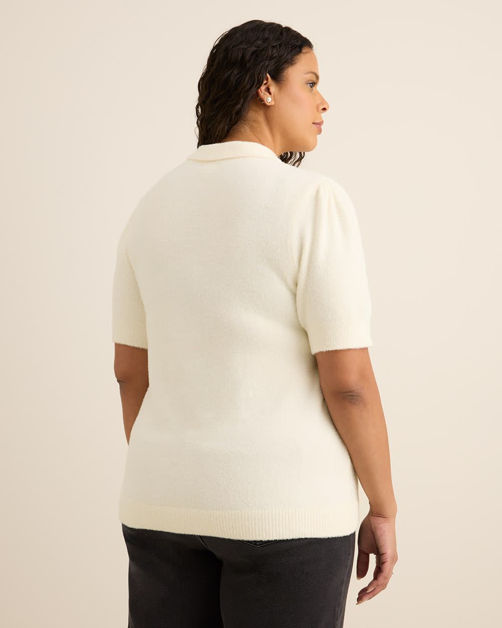 Pull duveteux à manches courtes et col polo avec boutons de fantaisie