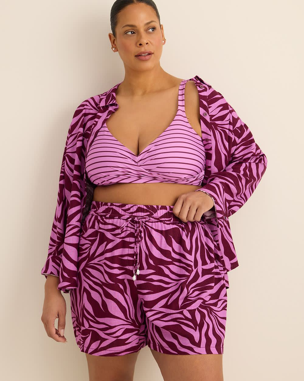 Soyez prête à bouger avec ce short fluide taille plus. Fait d'un mélange de lin léger avec une taille élastique à cordon à enfiler pour encore plus de confort, ce short passe-partout est tout simplement parfait pour vos looks de vacances.