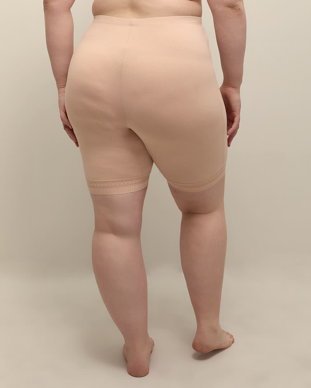 Vous adorerez porter cette culotte à jambe longue taille plus avec une garniture de dentelle à l'ourlet qui affinera toutes les silhouettes. Une belle façon de vous sentir belle et bien dans votre nouvelle robe festive, et ce, toute la soirée!