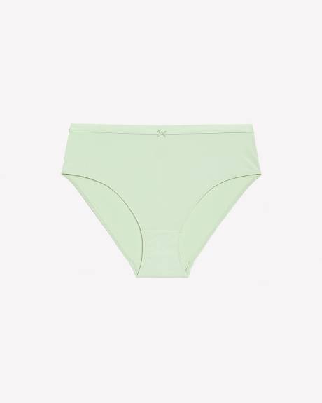 "Envie d'un confort stylé tout au long de la journée? Optez pour cette culotte classique taille plus échancrée faite d'une microfibre d'une couleur magnifique avec une adorable boucle à l'avant.