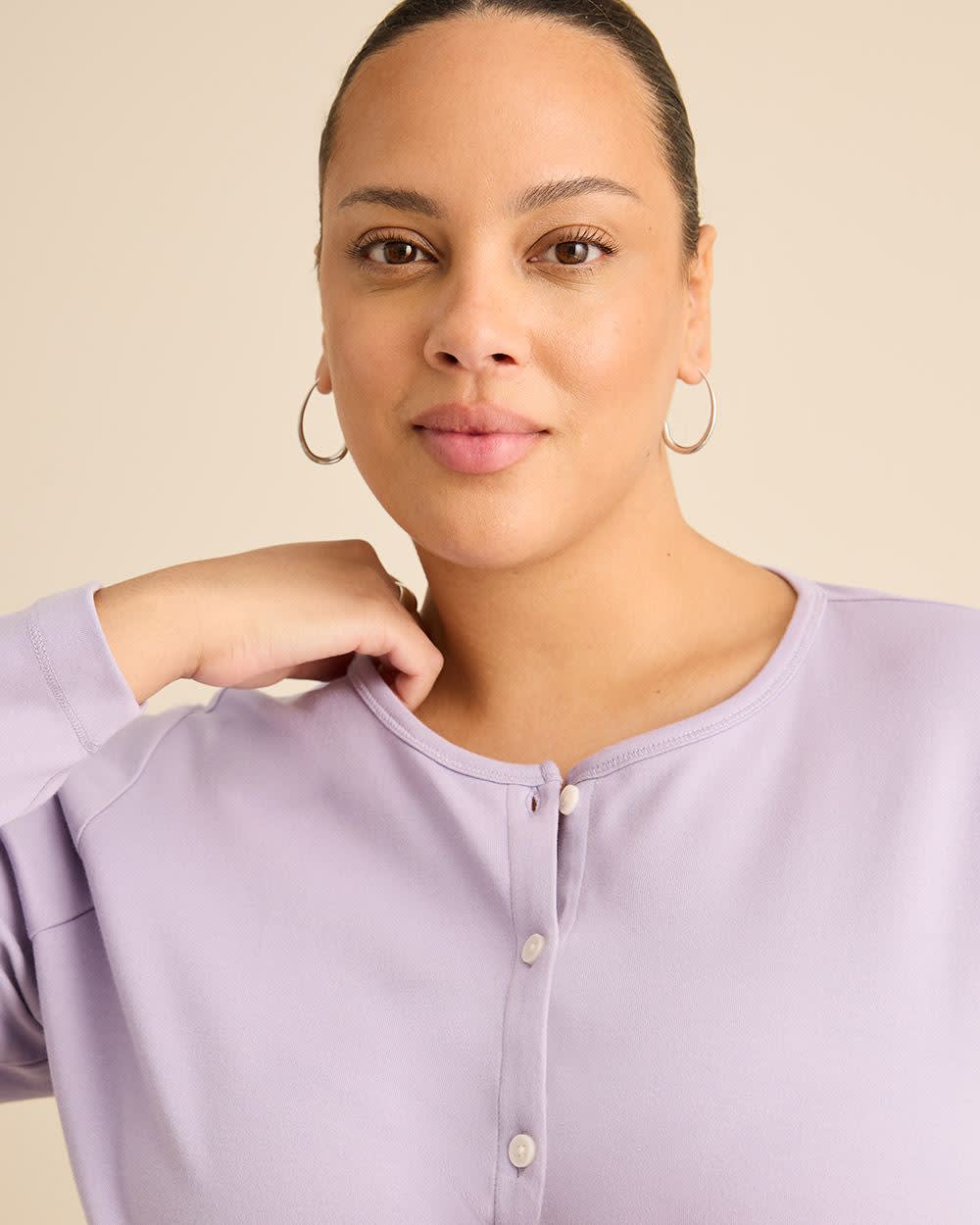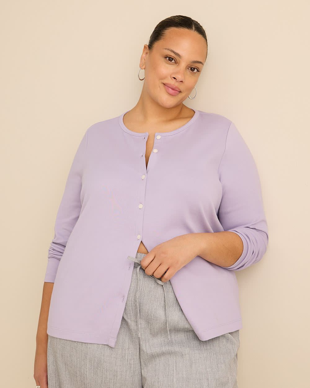 Une pièce classique avec une touche d'élégance décontractée. Ce haut taille plus en tricot doux tombe à merveille grâce à son ourlet à pans ouverts, ajoutant du mouvement et du style à votre look. Facile à boutonner, encore plus facile à adopter.