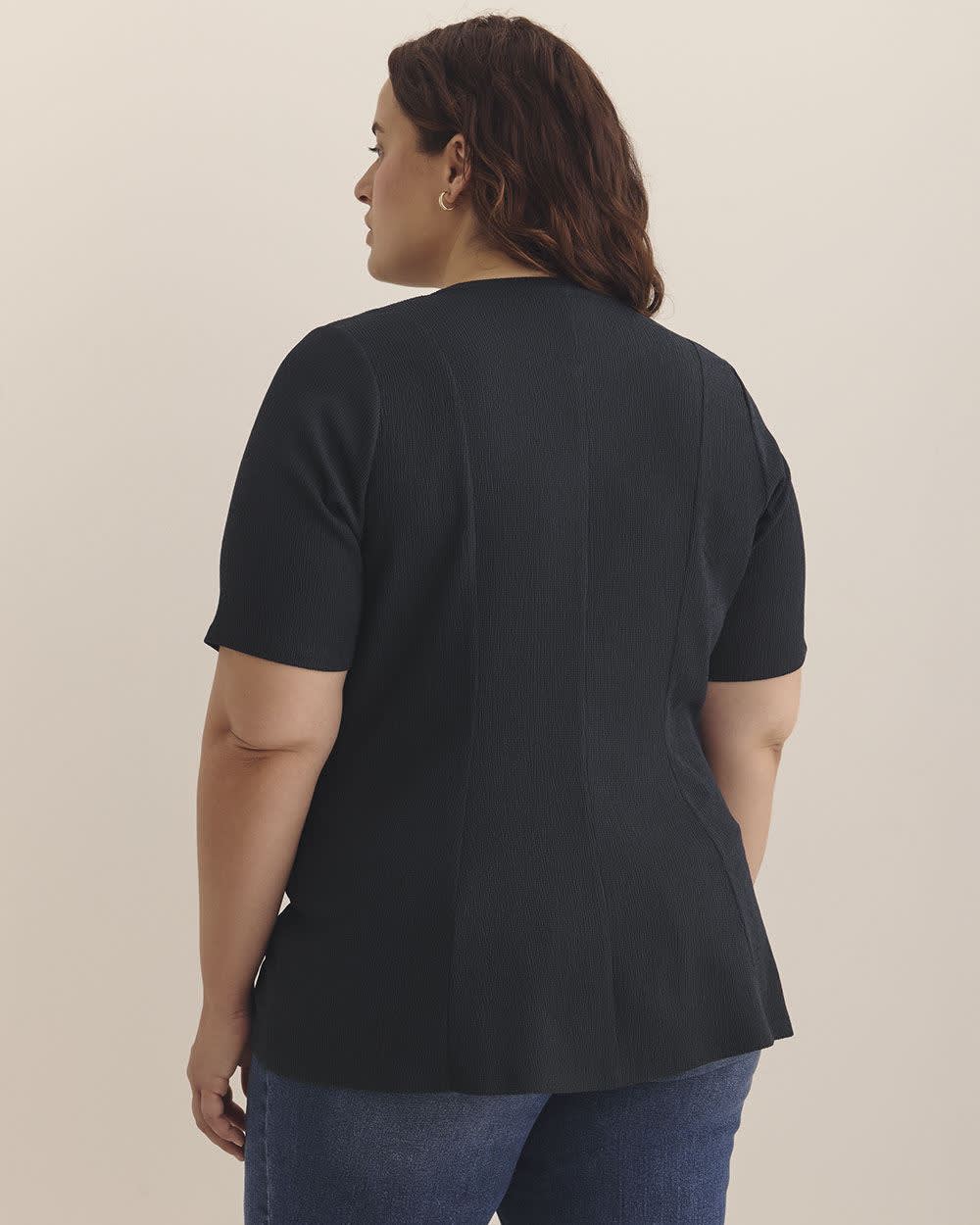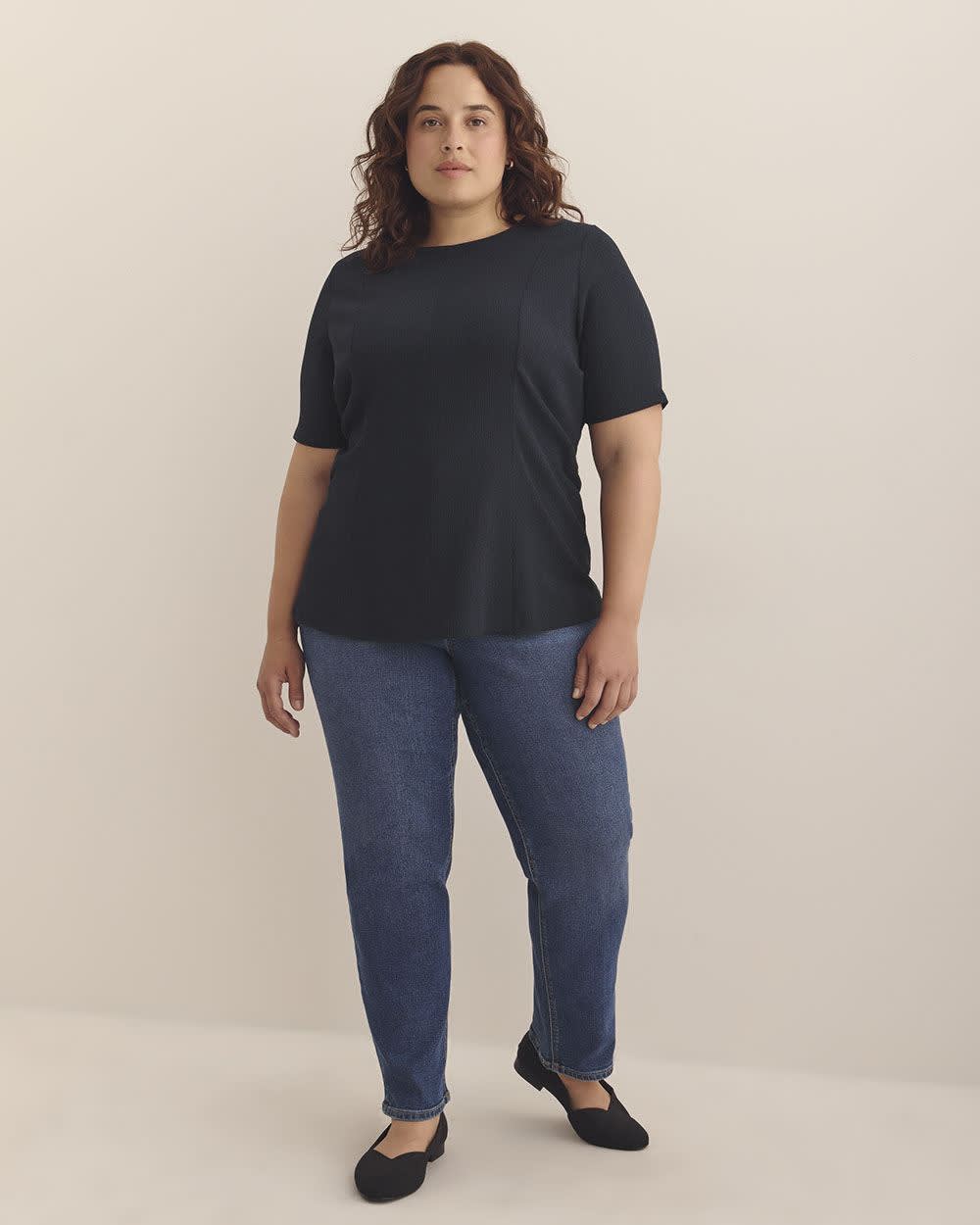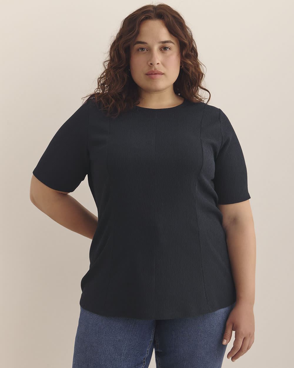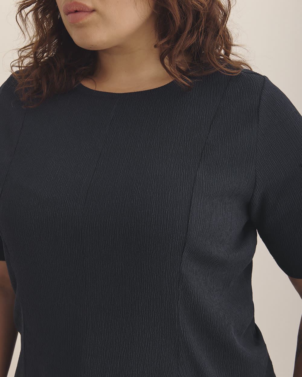 Rempli de style. Parfaitement doux. Ultra confortable. Tout ce dont vous rêvez en un seul haut taille plus. Ce chandail à coupe trapèze avec coutures princesses sur le devant et au dos vous offre un style qui avantage à merveille votre silhouette.
