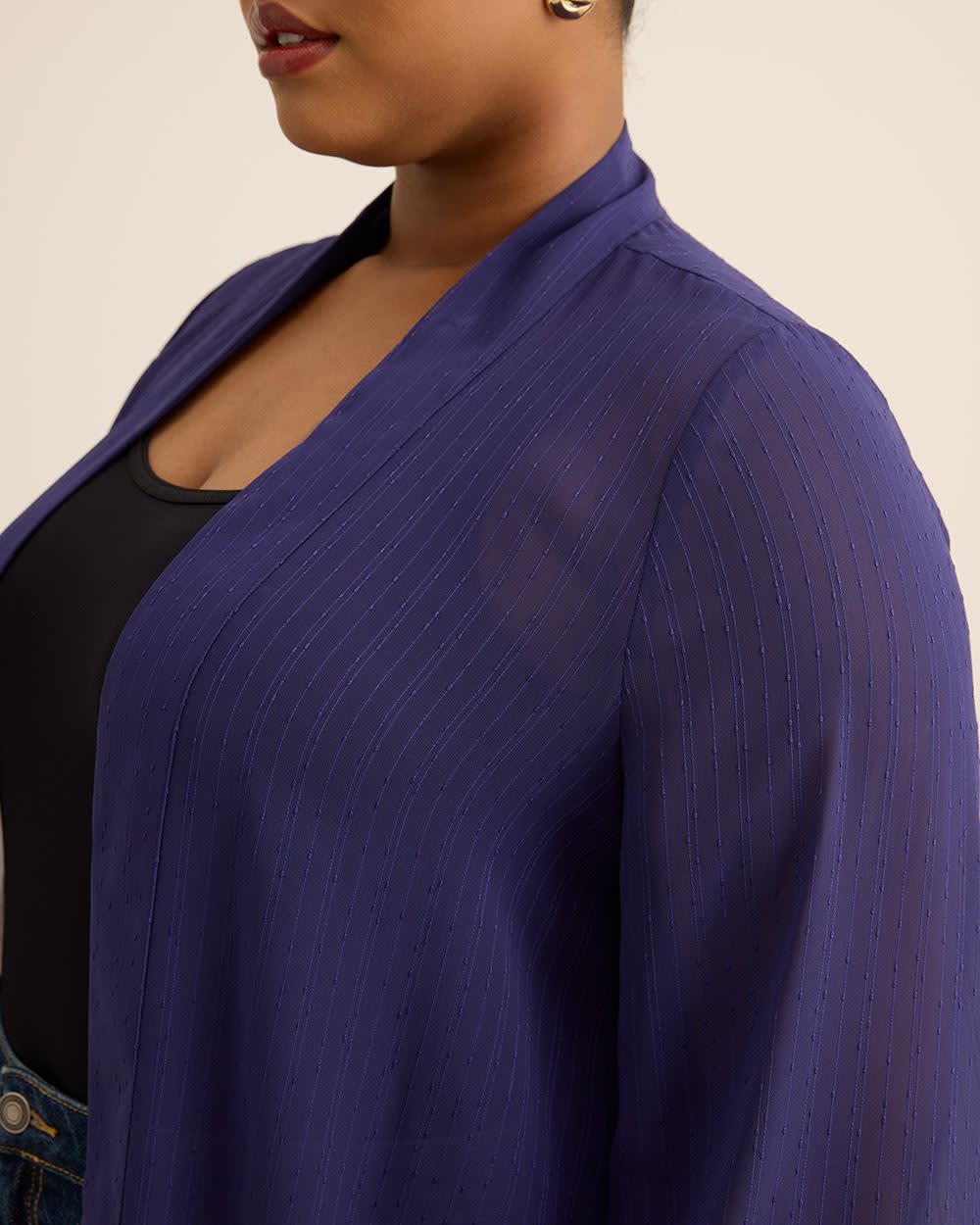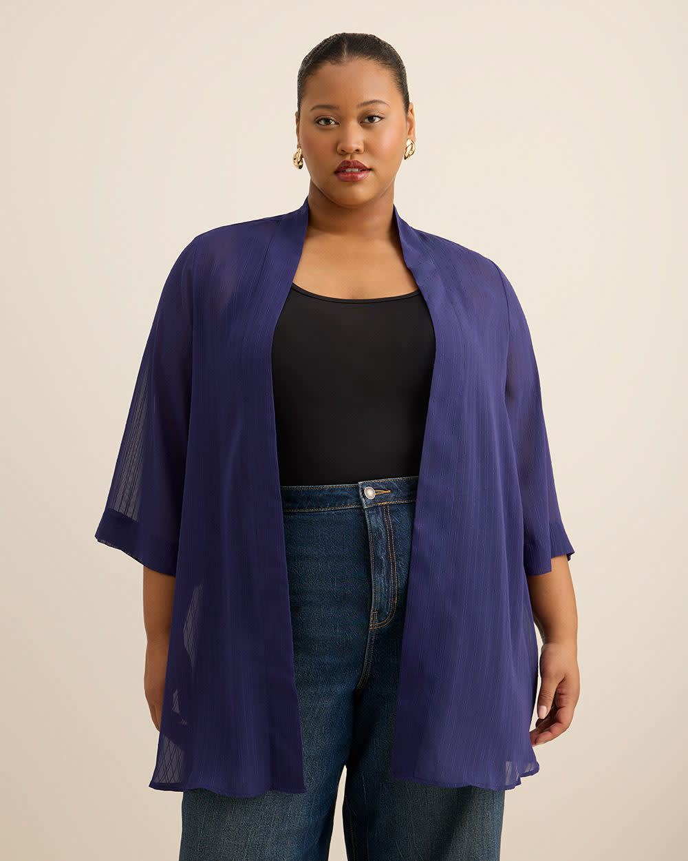 Léger et facile à agencer, ce kimono taille plus doté de manches 3/4 est fait pour compléter vos tenues avec style. Comme il vous arrive légèrement sous le genou, c'est un par-dessus fonctionnel et tendance qui allonge votre silhouette.