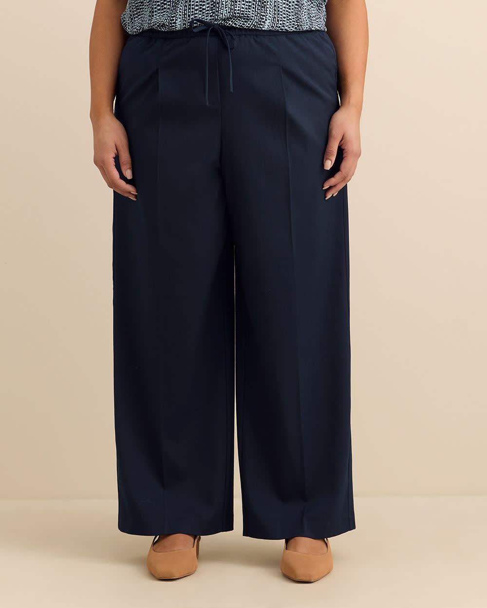 L'élégance et le confort ne se lâchent plus dans ce pantalon tissé taille plus. Sa coupe tendance à jambe évasée met en valeur votre silhouette alors que sa taille élastique confortable avec cordon donne à votre look une touche sophistiquée. Un pantalon passe-partout, parfait pour un style chic comme un look décontracté à la maison.