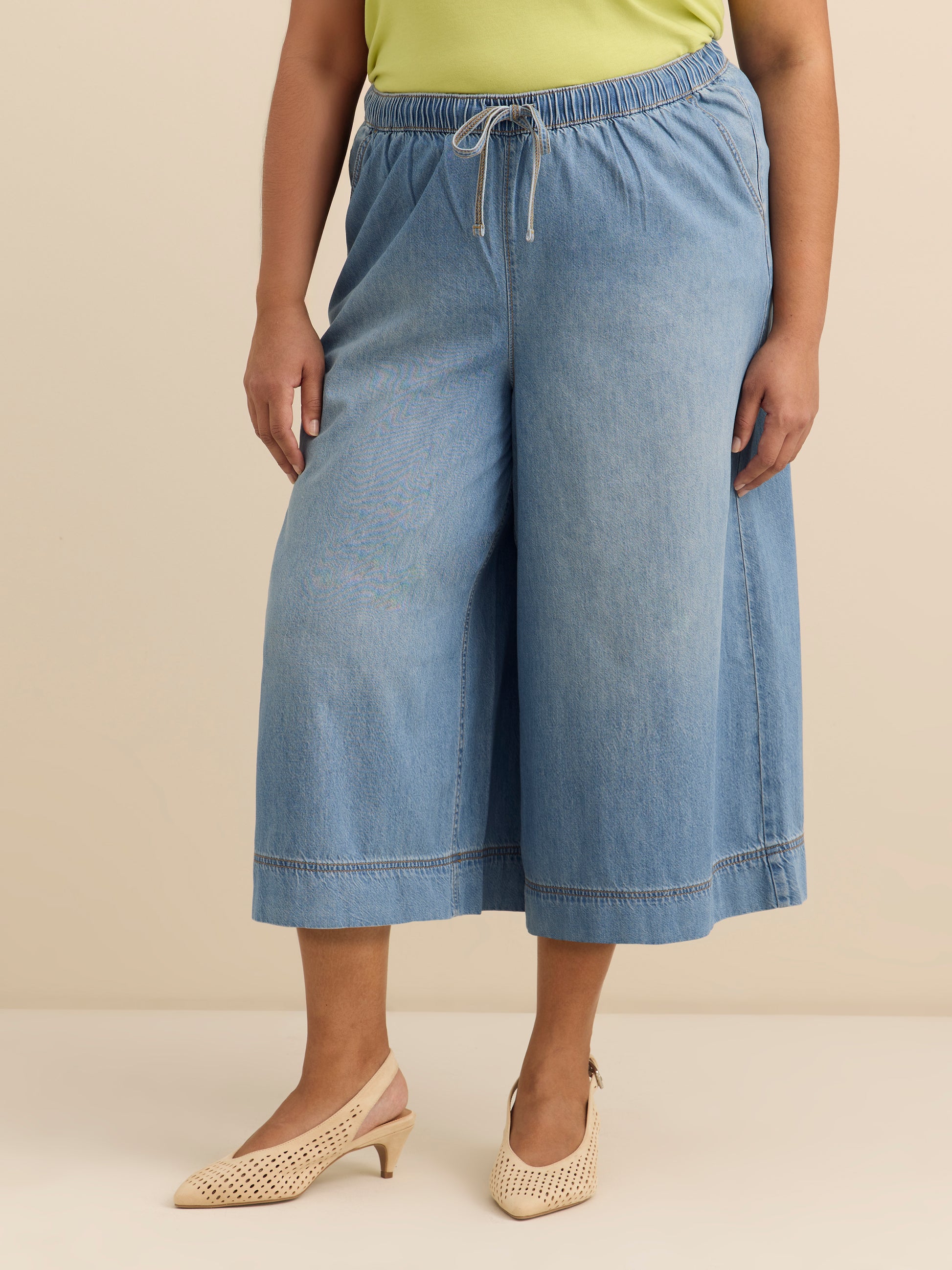 Légers, stylés et polyvalents, ces pantalons capris sont dotés d'une jambe large, d'un cordon à la taille et de pochets en biais sur le devant. Il suffit de les enfiler pour une tenue splendide.