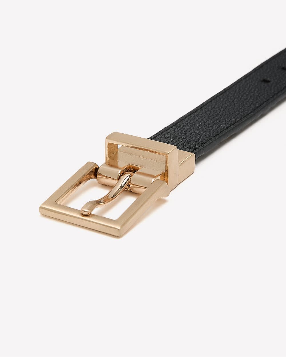 Deux styles, un seul accessoire audacieux. Cette ceinture en denim réversible arbore un imprimé animal sur un fini en cuir synthétique, avec une boucle métallique pour un look aussi féroce que polyvalent.