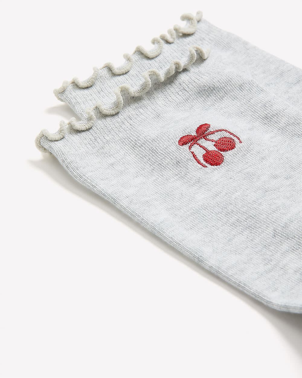 Chaussettes grises avec rebords ondulés et cerises brodées