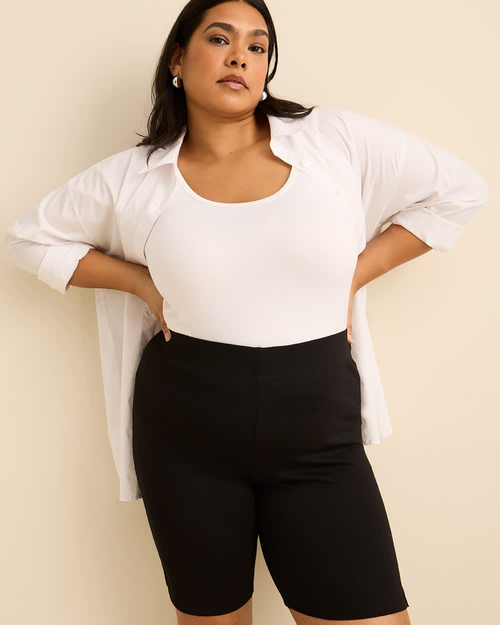Bougez en toute confiance dans ce cuissard de vélo taille plus qui épouse vos courbes. Son tissu extensible, doux et sculptant, vous offre un excellent maintien, tandis que son design épuré et minimaliste s'agence facilement avec toutes vos tenues décontractées. Conçu pour la femme moderne et active, il allie confort, style et un regain d'énergie.