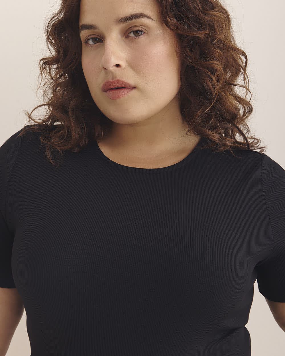 Doté d'un col rond et de manches courtes, ce justaucorps taille plus est la première couche de base à porter sous un chandail, un chemisier ou un veston. Caractéristiques - Fini tricot - Manches courtes - Coupe ajustée - Gousset avec boutons pression - Longueur (avec le gousset) : 31,5 po