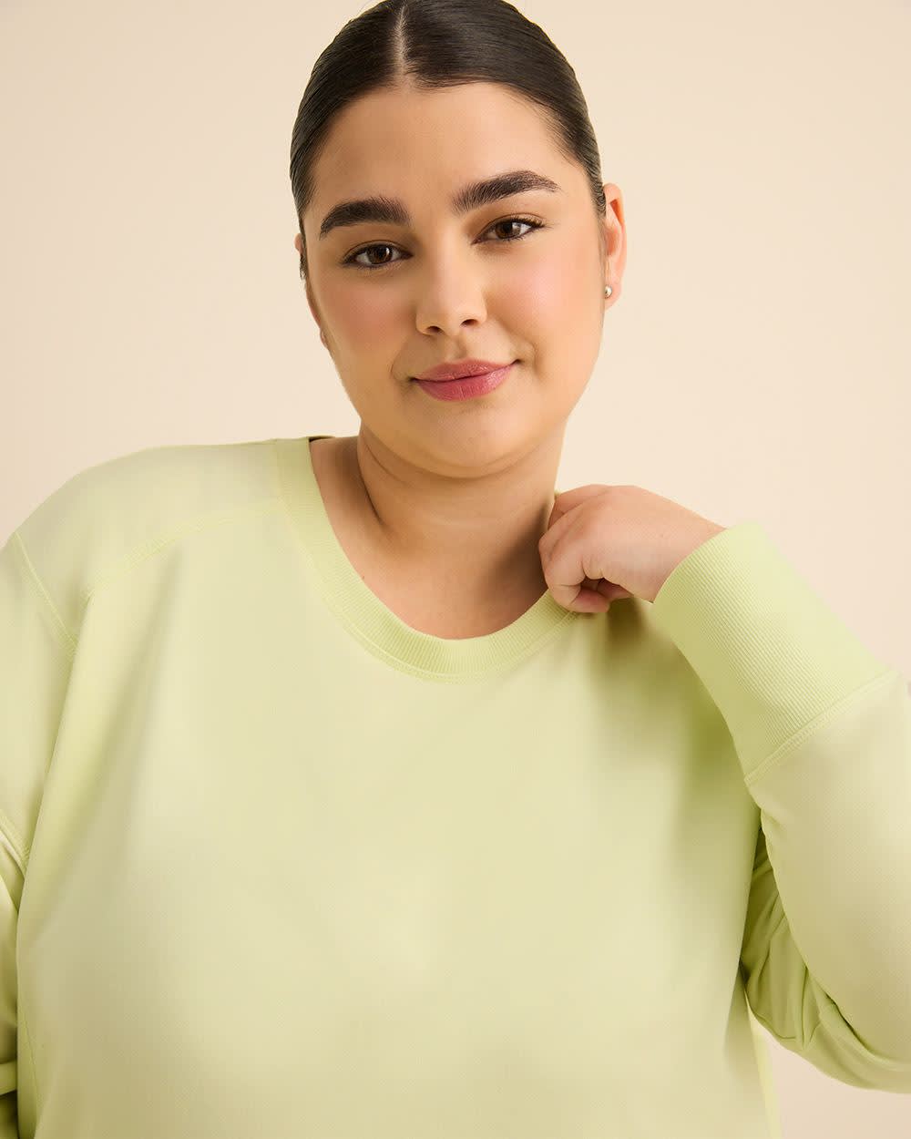 C'est la saison des hauts confos! Ce pull taille plus à manches longues est un essentiel assuré pour un parfait mélange de confort et de style, grâce à son fini en tricot français, ses longues fentes latérales, son look à panneaux et ses détails côtelés. Bref, c'est le haut parfait pour relaxer à la maison ou quitter le gym après une séance de cardio intense.