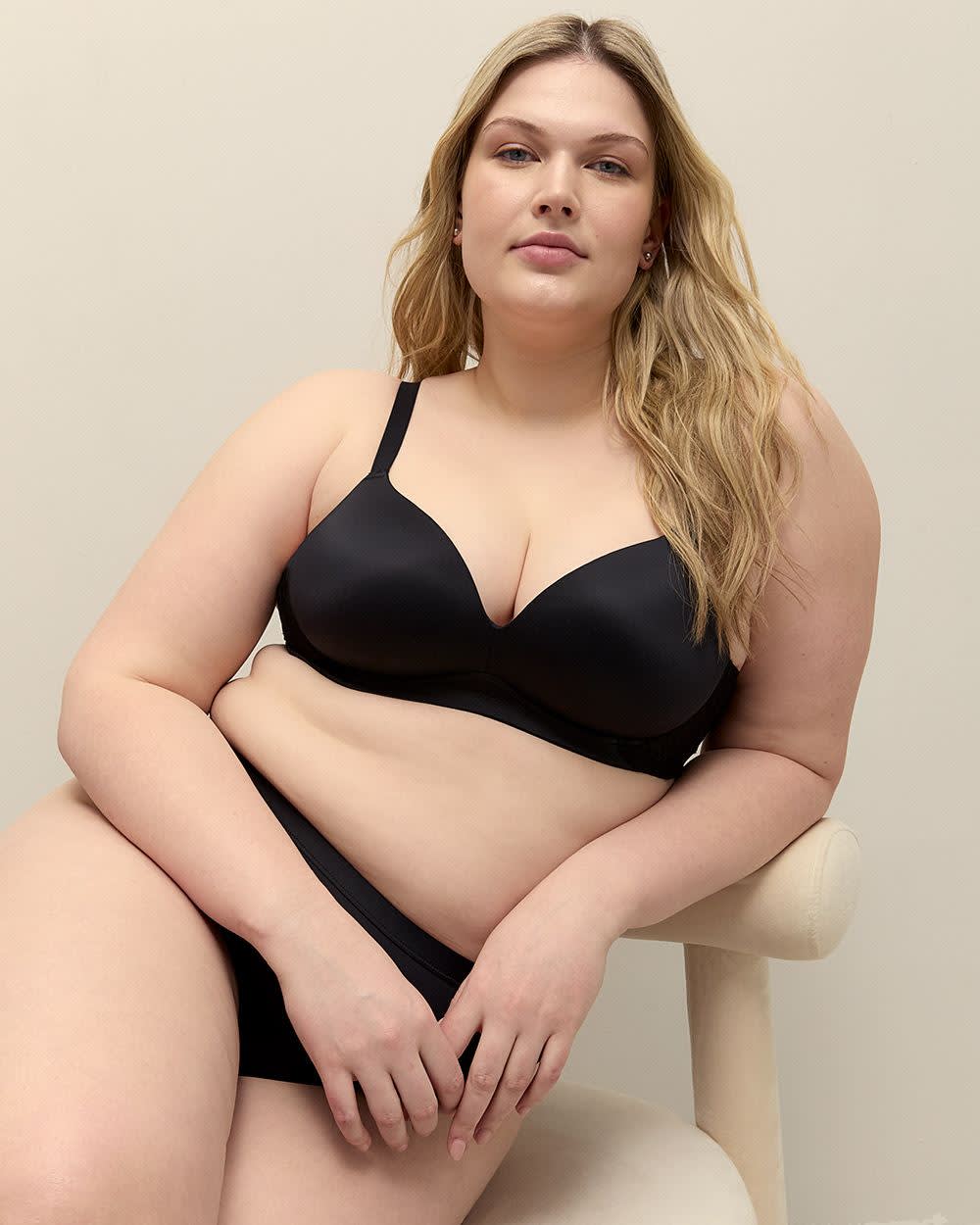 En plus de créer un sublime décolleté pigeonnant et d'offrir un support inégalé, ce soutien-gorge taille plus sans armatures Déesse est doté de maille extensible à l'aile arrière pour une touche de confort supplémentaire.