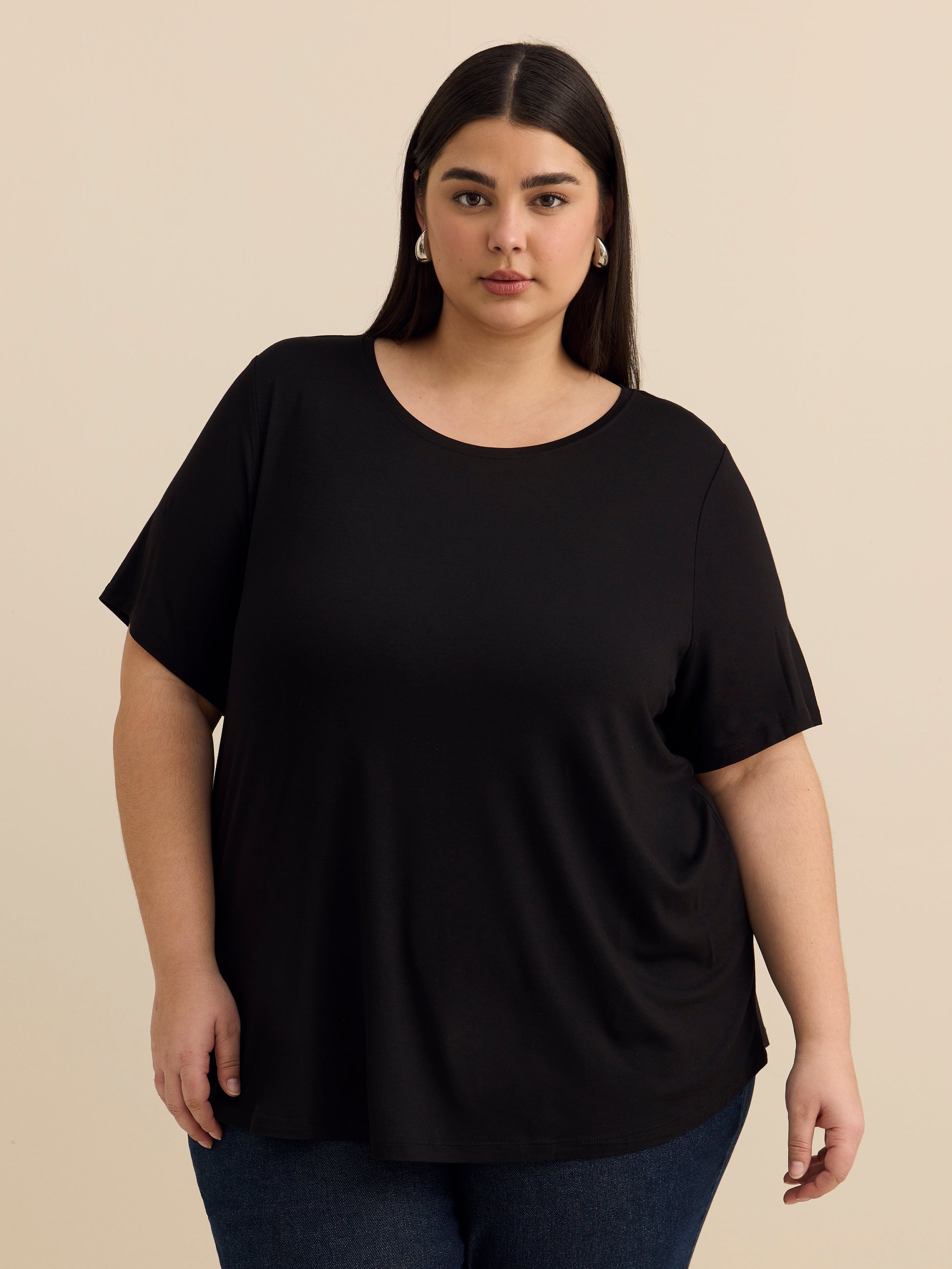 Réinventez vos essentiels du quotidien avec ce t-shirt taille plus à col rond et coupe moderne. Doux, extensible et élégant, il allie confort absolu et style contemporain.