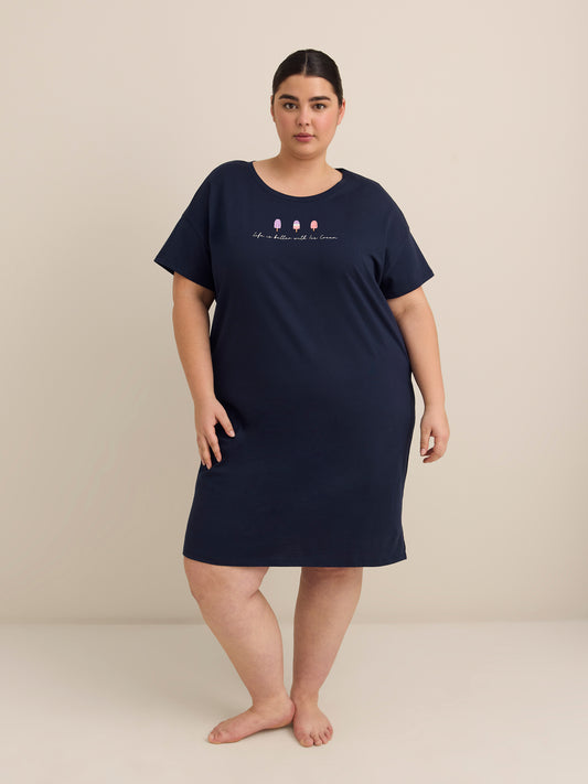 Chemise de nuit noire à manches courtes avec imprimé de crème glacée - ti Voglio