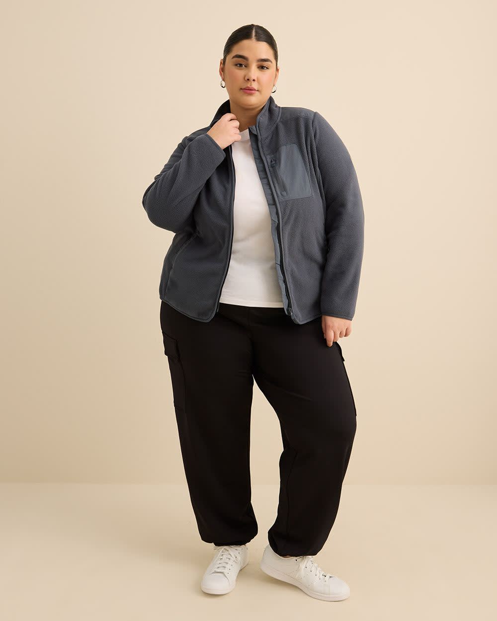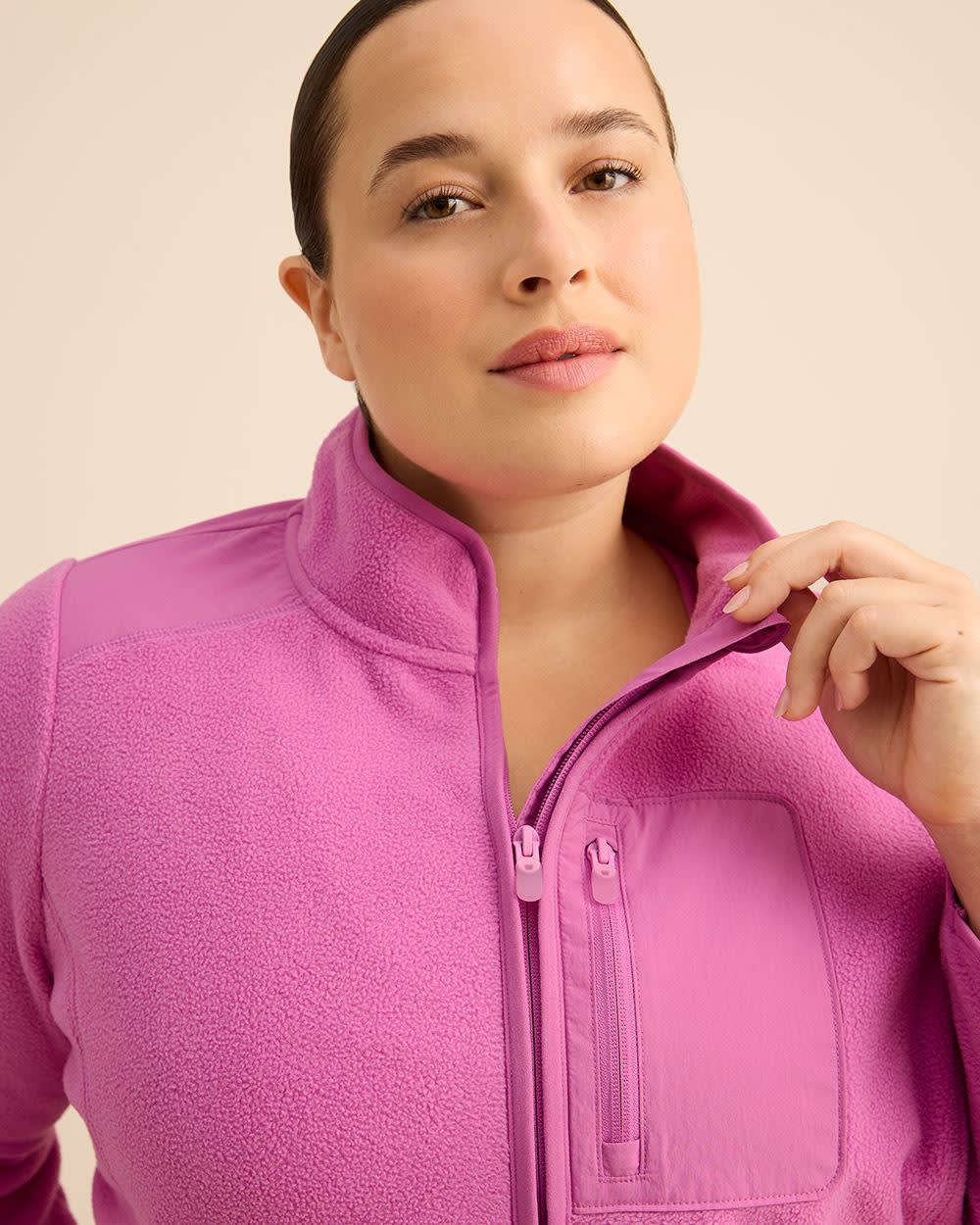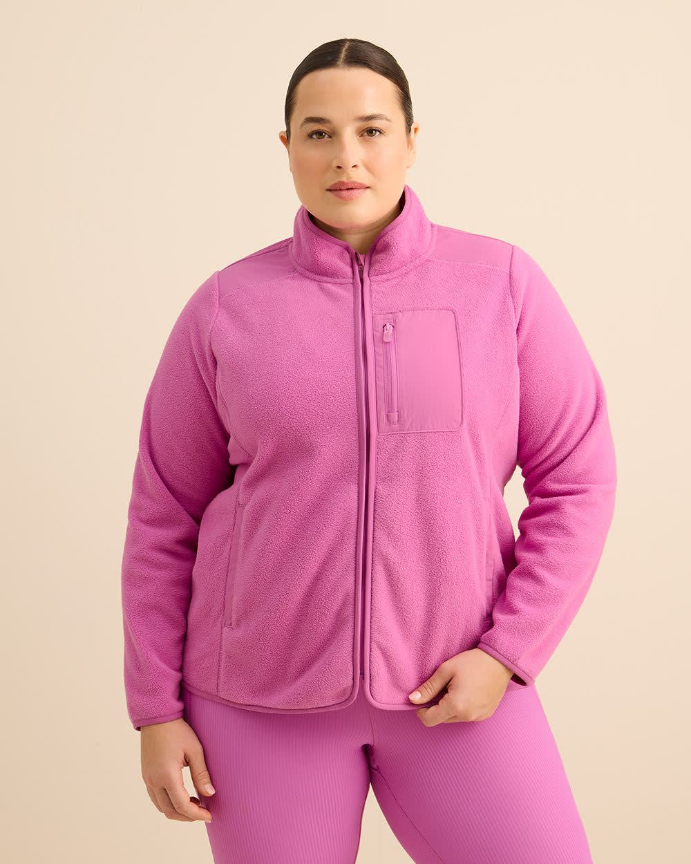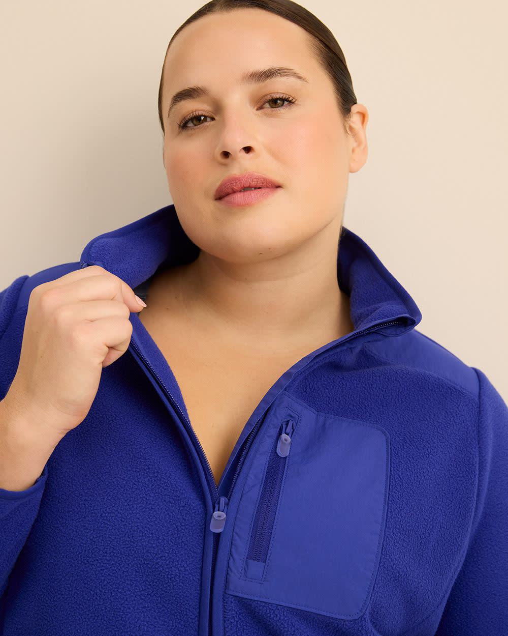 La chaleur, sans compromis sur le style. Cette veste taille plus en molleton polaire vous garde bien au chaud tout en restant légère, avec son col montant moderne, ses poches zippées et sa coupe décontractée idéale par-dessus vos tenues.
