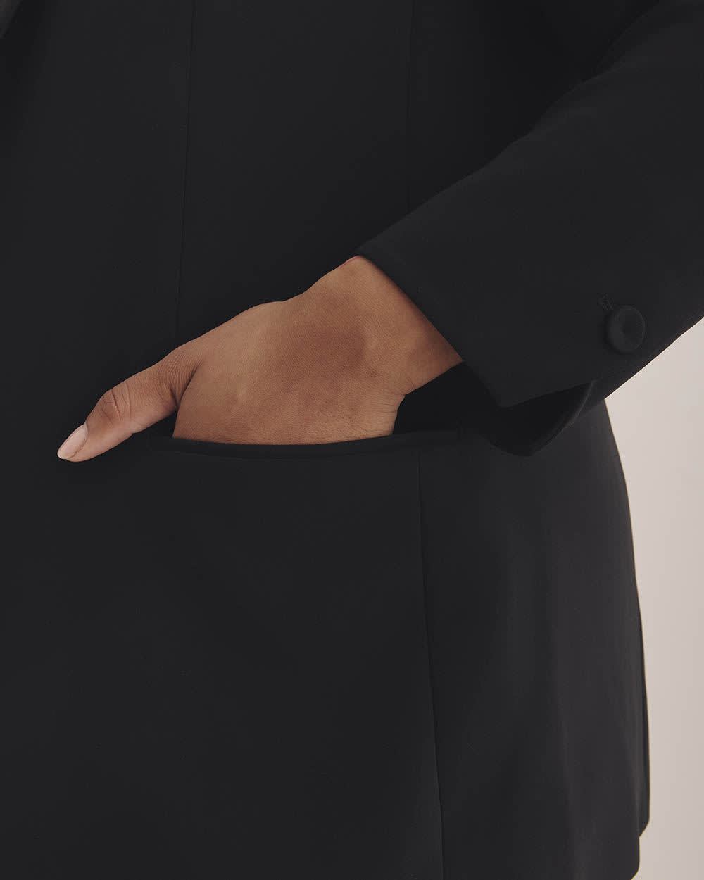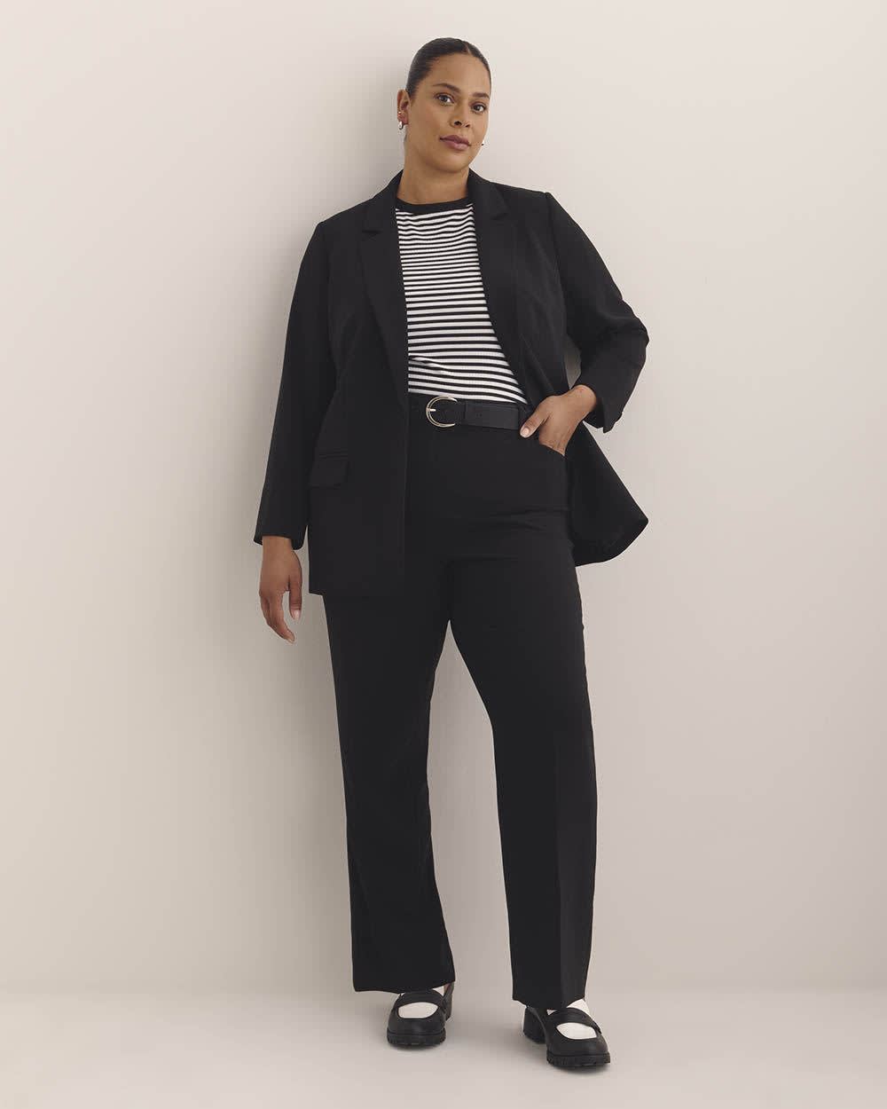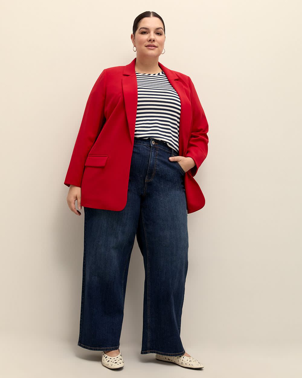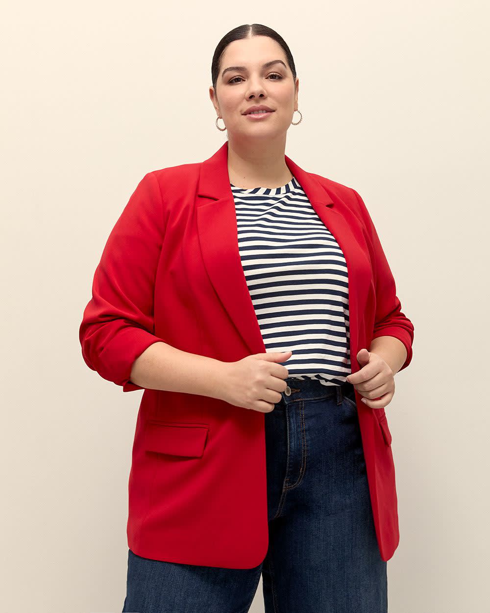 Optez pour l'élégance moderne cette saison avec ce veston taille plus qui fera tourner les têtes. Grâce à sa couleur passe-partout, à sa coupe ajustée et à son look sans bouton, vous pouvez le porter avec un jean et un chemisier ou encore avec une jupe droite pour un style chic, professionnel et toujours confortable.