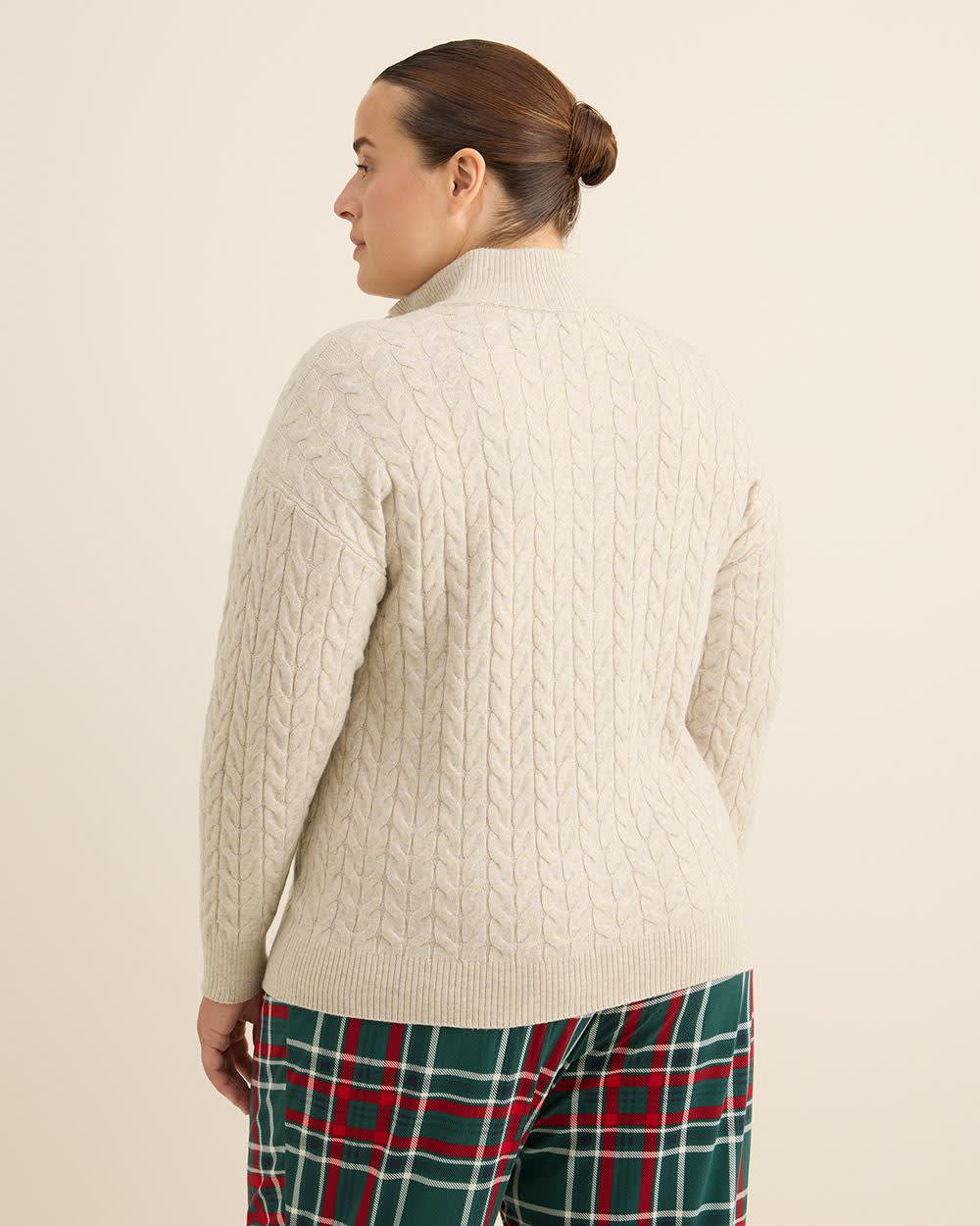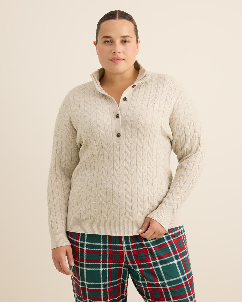 À la fois chic, confortable et tellement polyvalent. Fait d'un tricot à mailles torsadée, ce pull taille plus à col montant boutonné est tout simplement parfait pour vous garder au chaud et pleine de style, quelle que soit l'occasion.