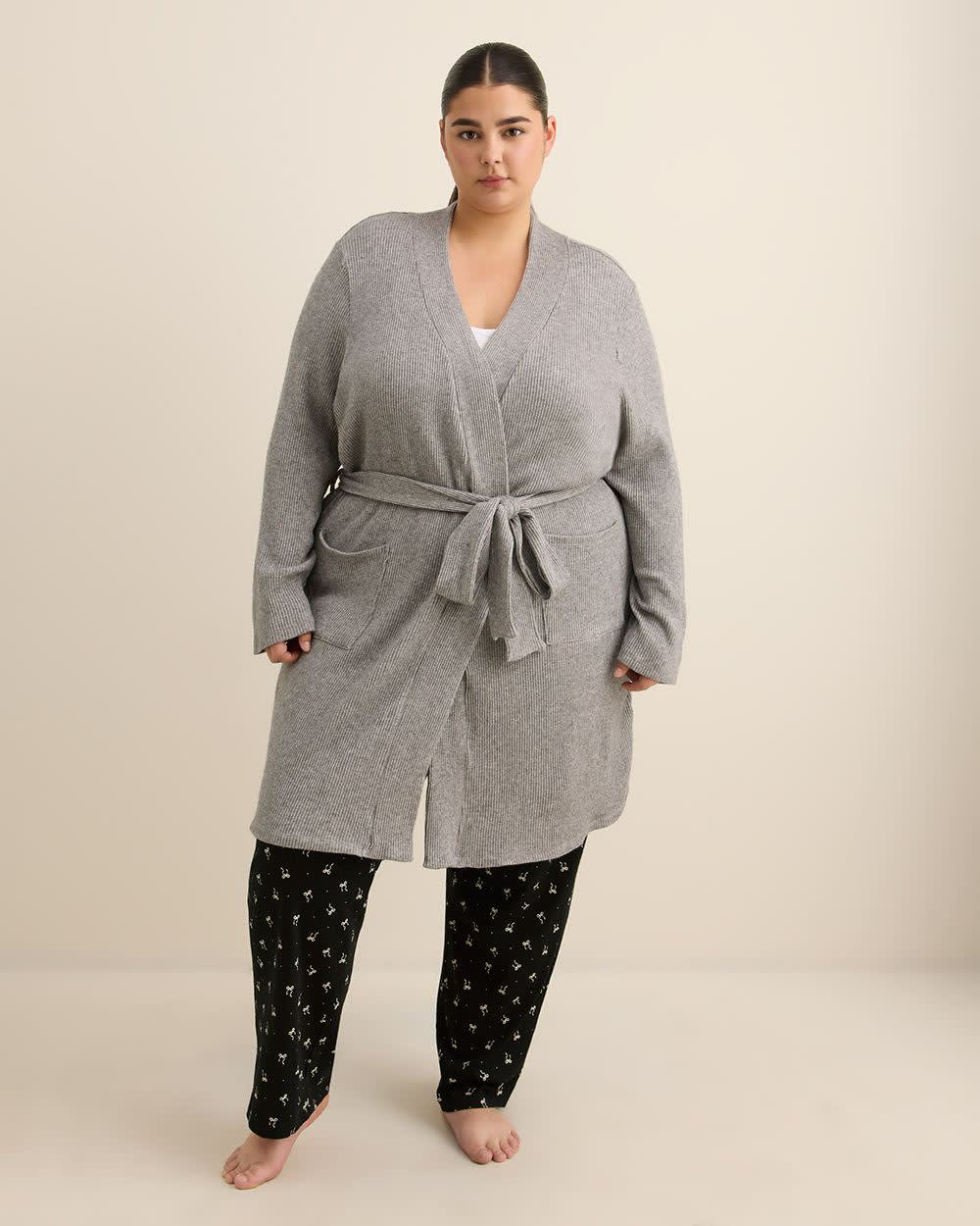 Enveloppez-vous dans un confort douillet avec cette robe de chambre taille à texture gaufrée. Douce, tendance et tellement douillette, cette robe de chambre est faite d'un mélange de tricot texturé extensible qui vous assure un confort en tout temps.