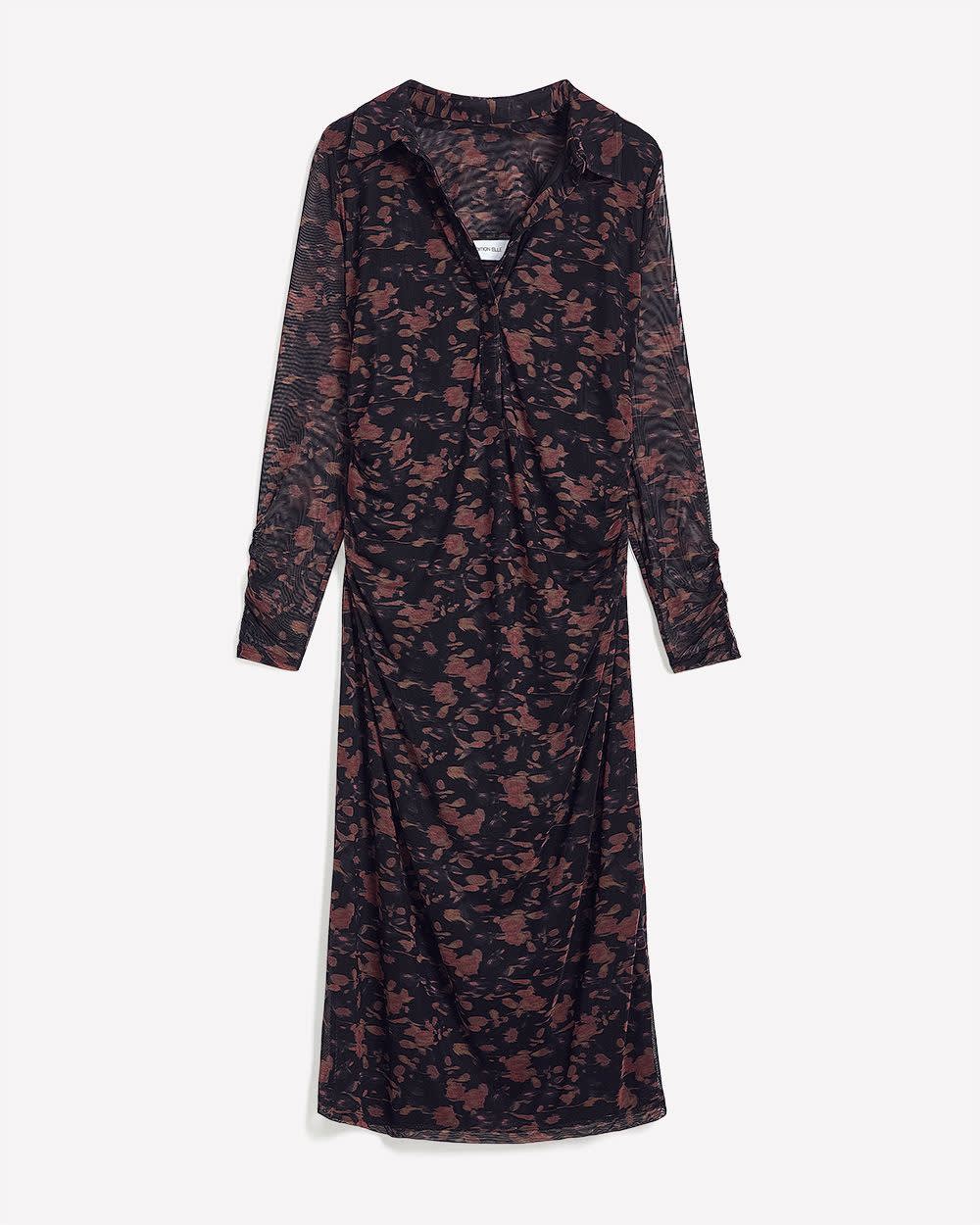 Robe mi-longue en maille noire fleurie avec col chemise - Addition Elle