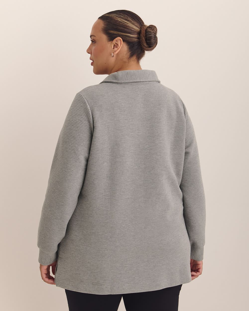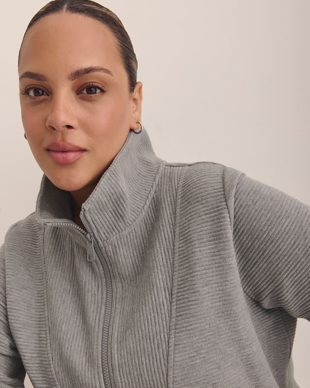 Sweatshirt tunique côtelé chiné à col cheminée zippé - Active Zone