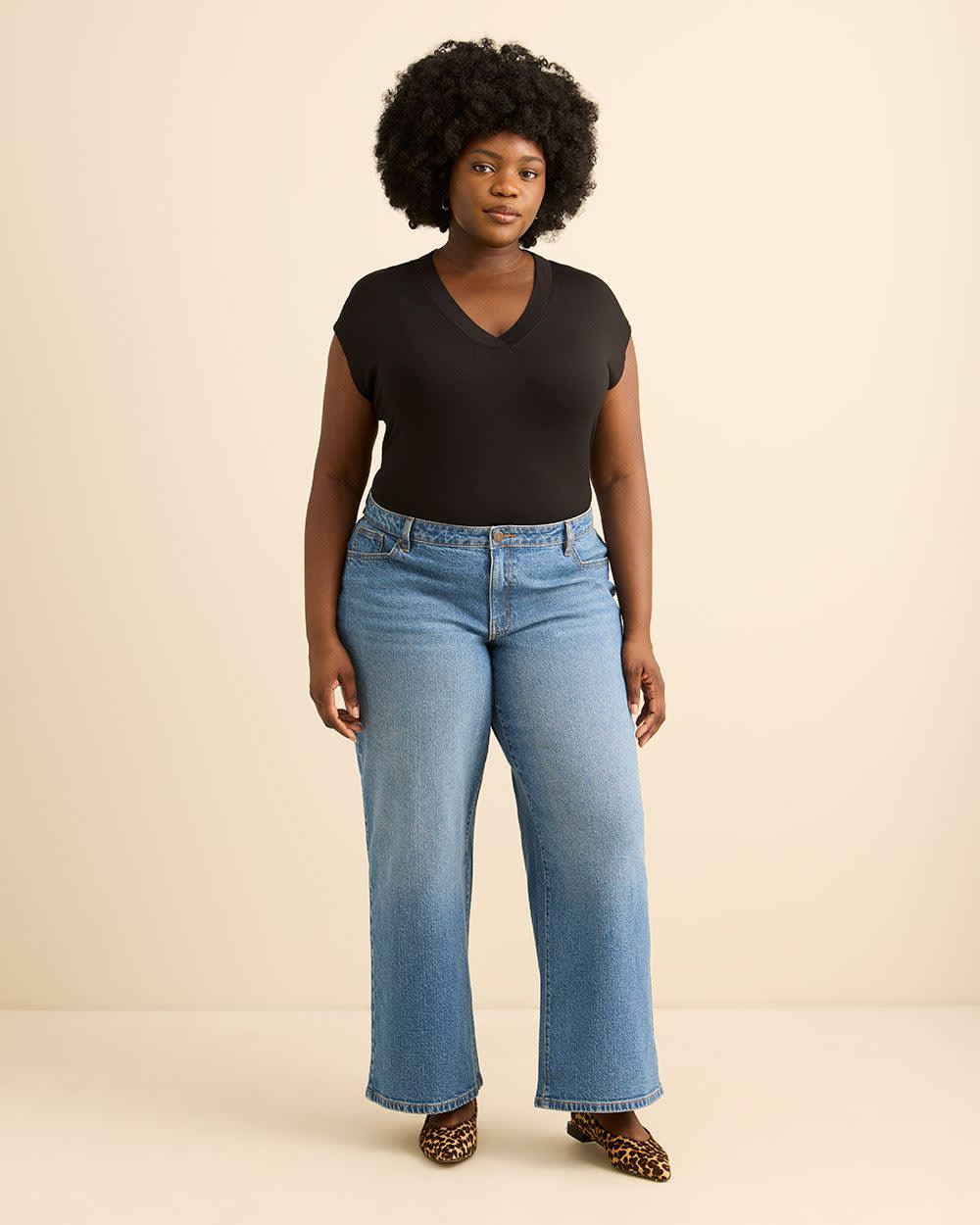T-shirt à encolure en V, coupe moderne - Addition Elle