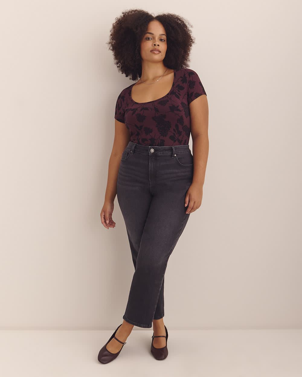 Conçu pour épouser vos courbes et mettre votre silhouette en valeur, ce t-shirt moulant taille plus est un essentiel du quotidien. Doté d'une encolure de forme carrée arrondie et de manches très courtes, il est parfait à porter avec vos jeans taille haute.