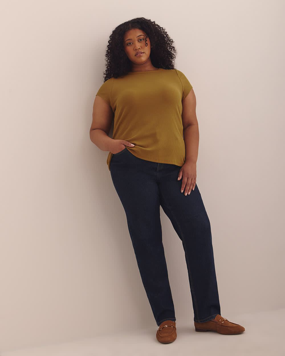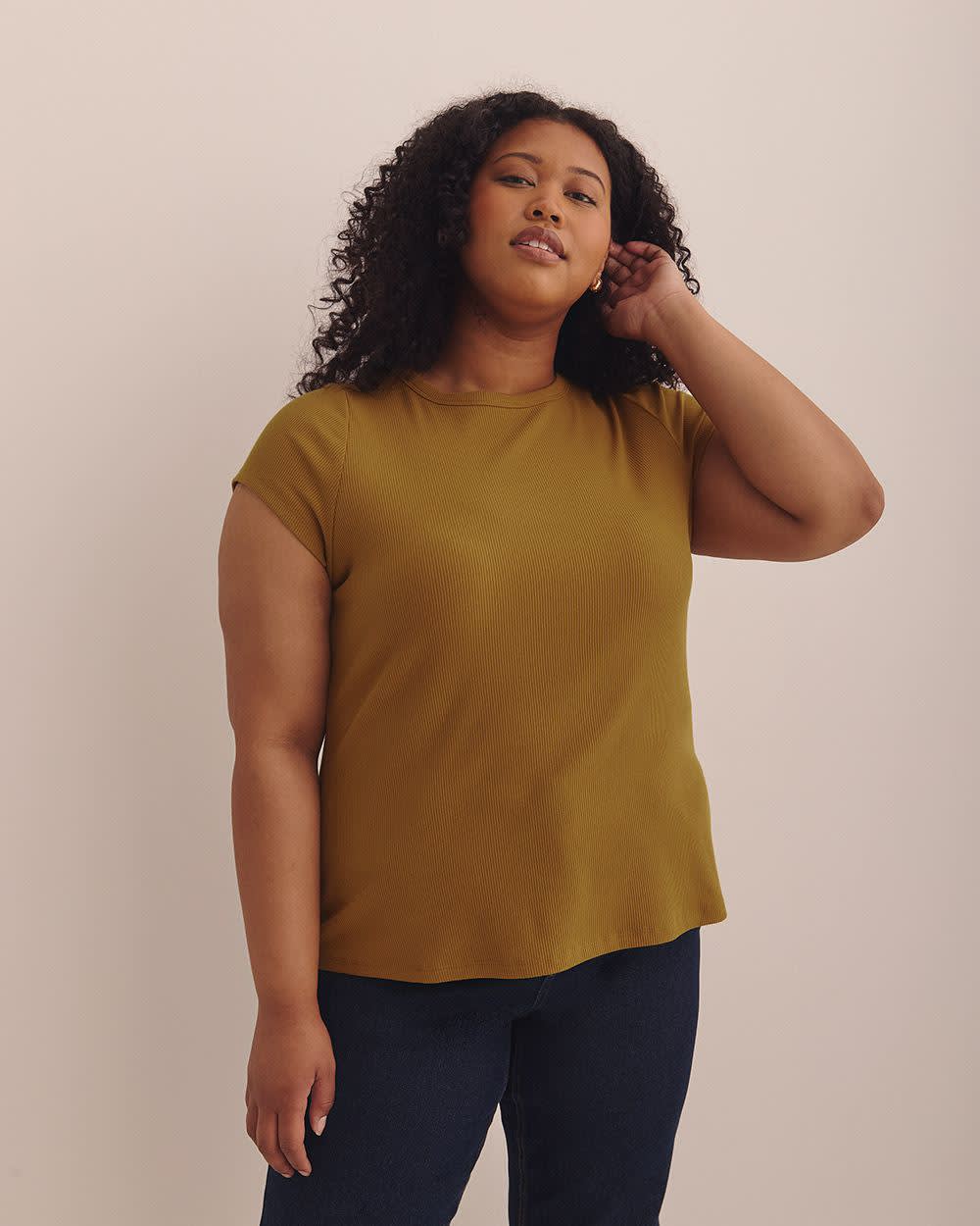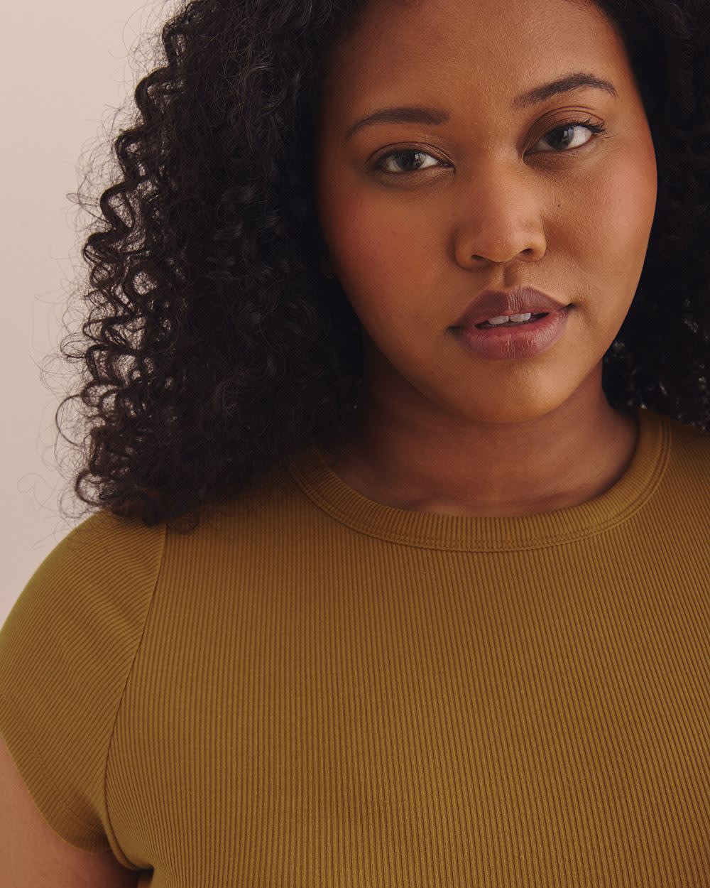 Conçu pour épouser vos courbes et mettre votre silhouette en valeur, ce t-shirt moulant ultra court taille plus fait d'un tricot côtelé est un essentiel du quotidien. Parfait à porter avec vos jeans taille haute.