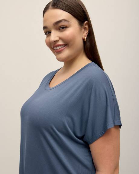 Ce t-shirt taille plus tendance conçu dans un tissu archi doux deviendra rapidement un chouchou de votre garde-robe. Avec sa couleur tendance, son col rond classique, ses manches basses très courtes et sa coupe moderne légèrement en trapèze et tellement confortable, il est un essentiel tout au long de l'année.