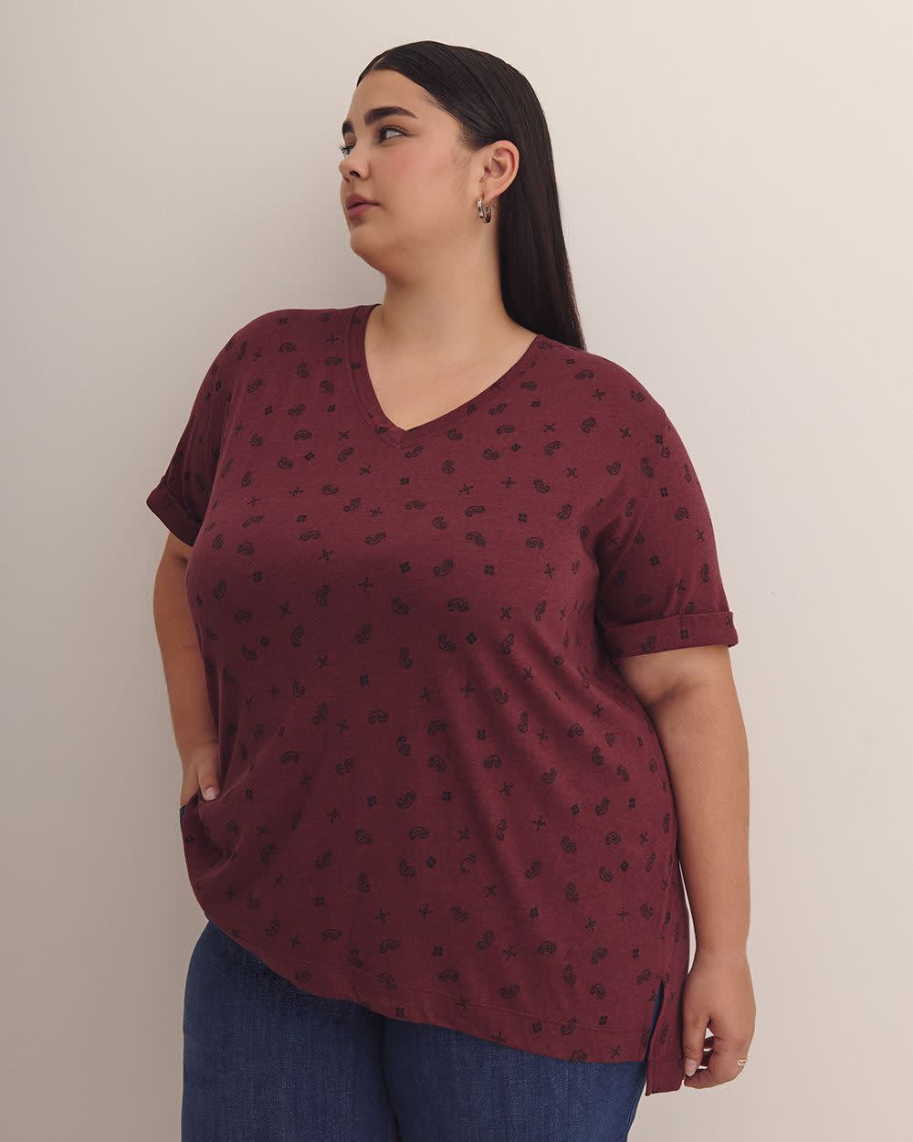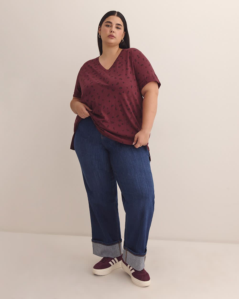 Classique, tendance et confortable. Ce t-shirt à manches courtes est assurément un morceau de base à garder à portée de main, quelle que soit la saison. Parfait à porter avec un legging, un jean ou un short, ce t-shirt ample taille plus en est un choix facile.
