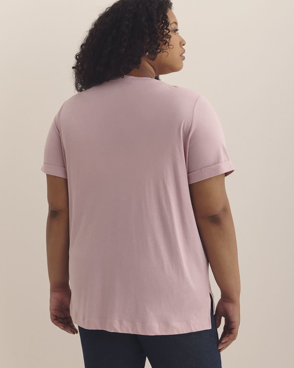 Classique, tendance et confortable. Ce t-shirt à manches courtes est assurément un morceau de base à garder à portée de main, quelle que soit la saison. Parfait à porter avec un legging, un jean ou un short, ce t-shirt ample taille plus en est un choix facile.