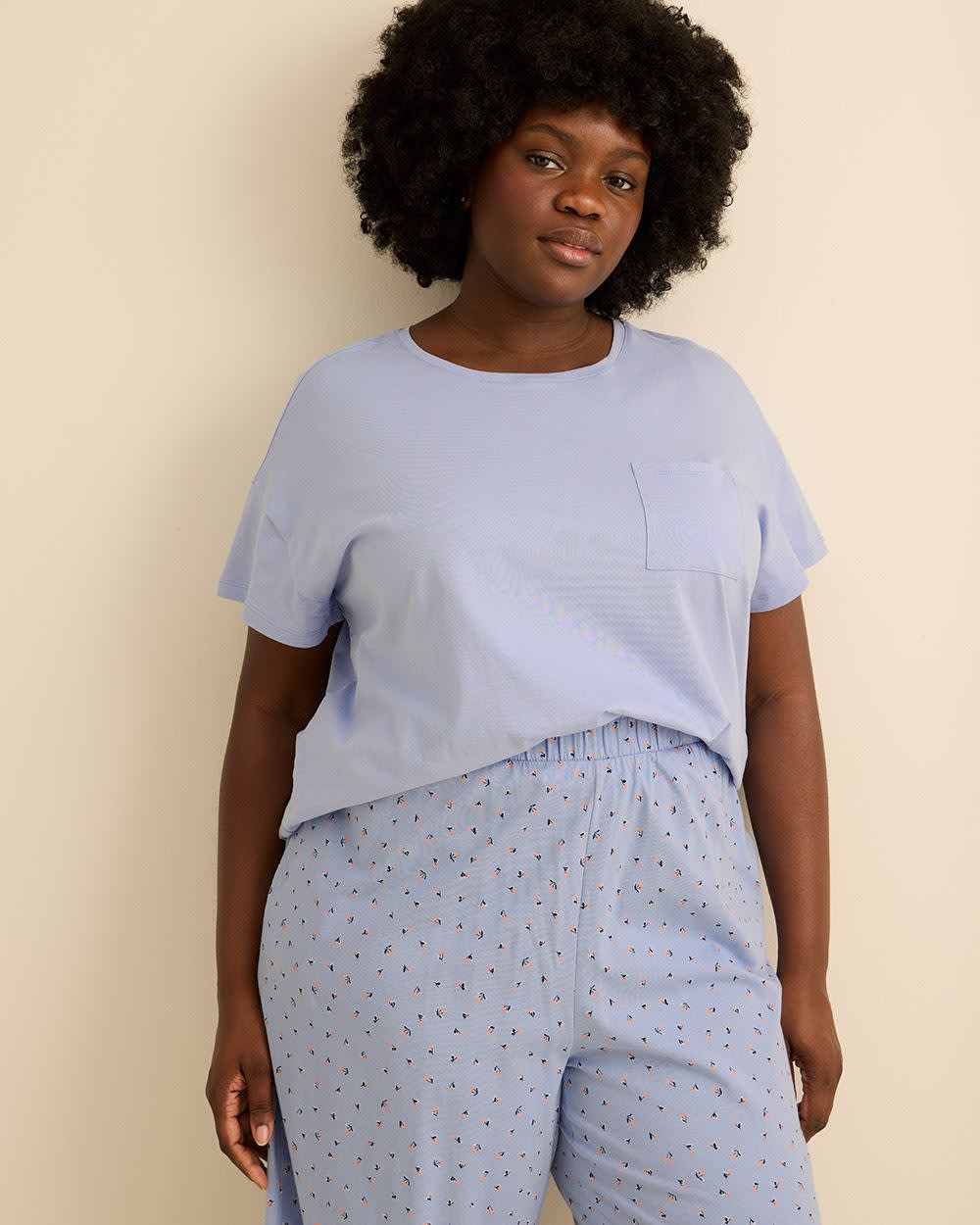 Dormez ou profitez de vos moments de détente en tout confort avec ce t-shirt de pyjama taille plus à coupe carrée. Confectionné en doux tricot de coton et orné d'une petite poche à la poitrine, il apporte une touche délicate à vos bonnes nuits de sommeil.