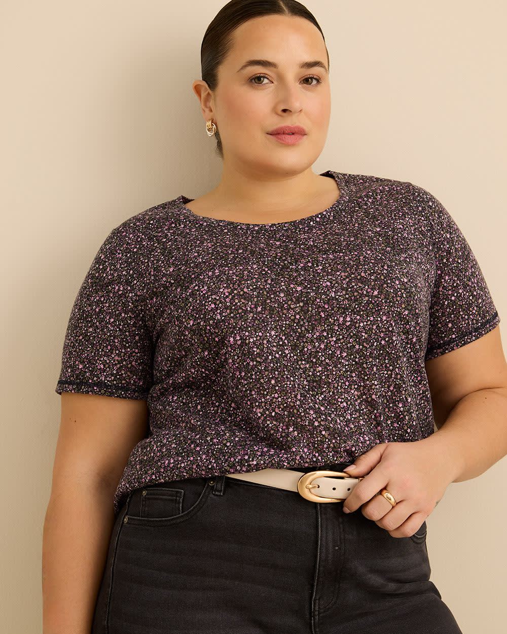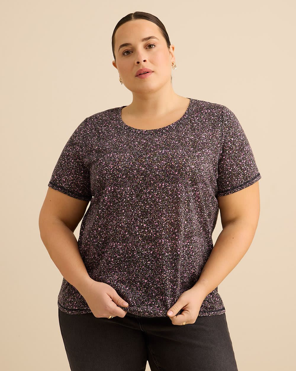 T-shirt imprimé à col rond et à manches courtes, coupe curvy