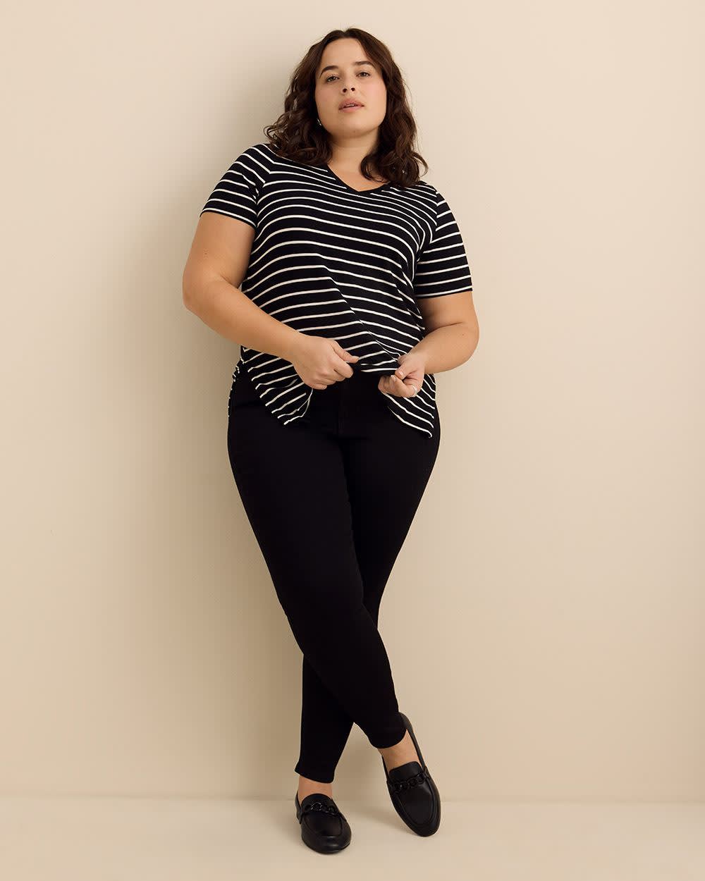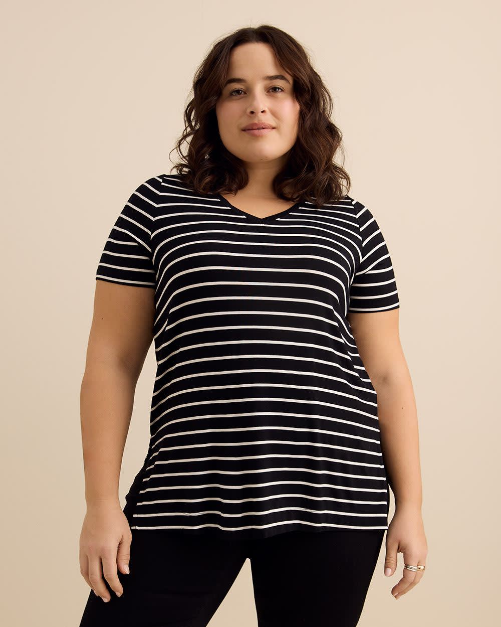 Restez fraîche et confortable avec cette tunique taille plus. Conçue avec des fentes latérales, des manches courtes et une encolure en V, ce haut a tout ce qu'il faut pour devenir votre nouveau vêtement préféré au quotidien.