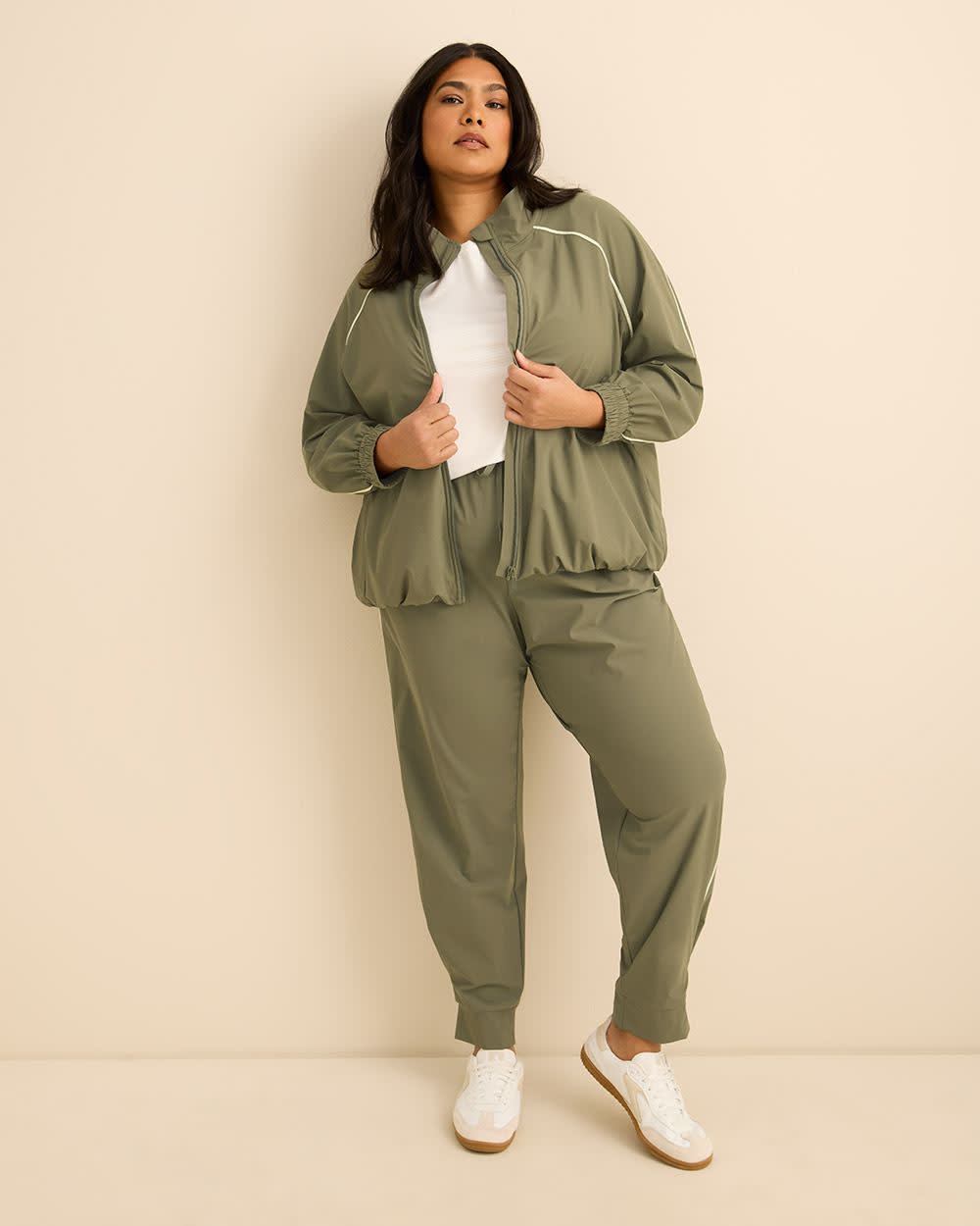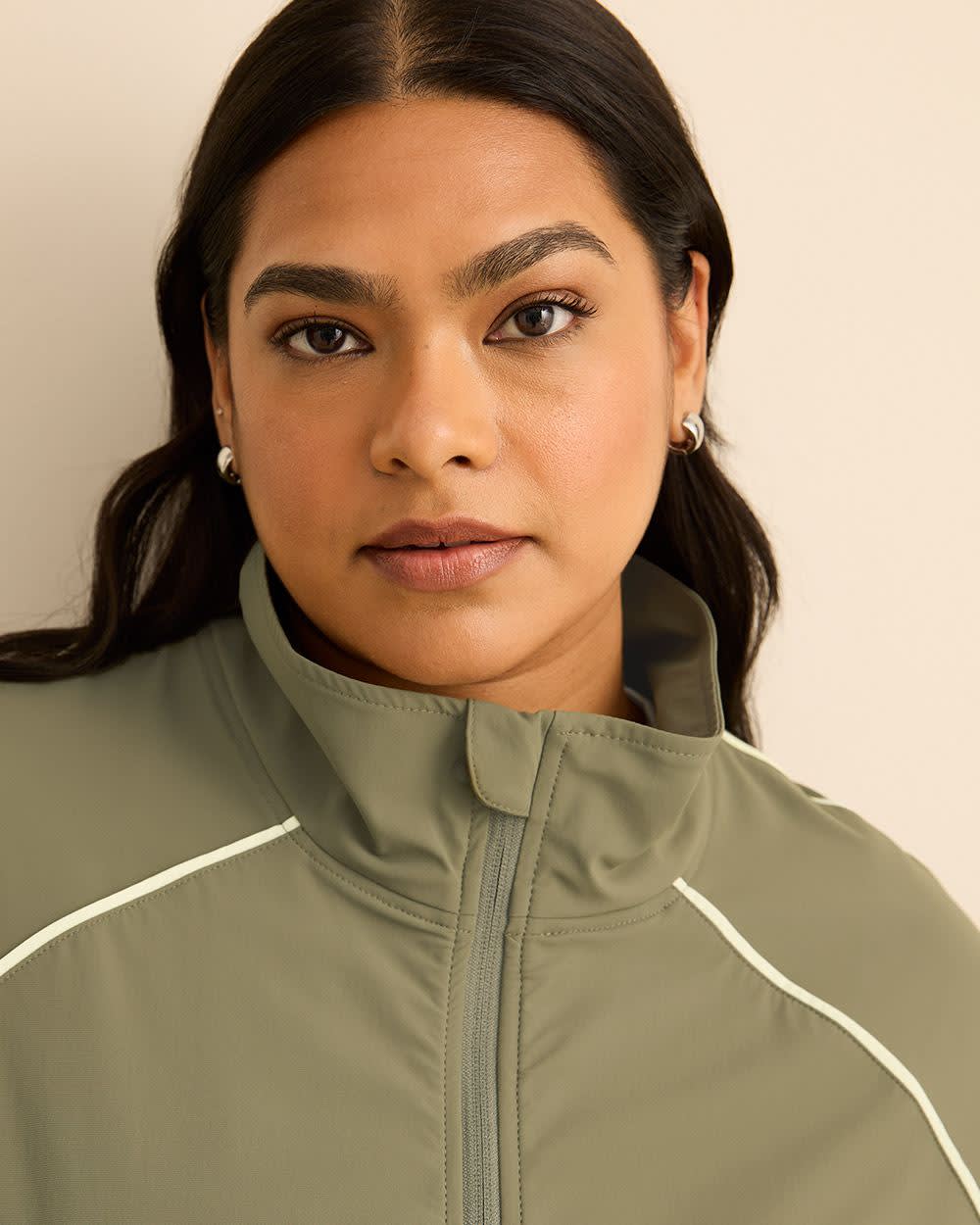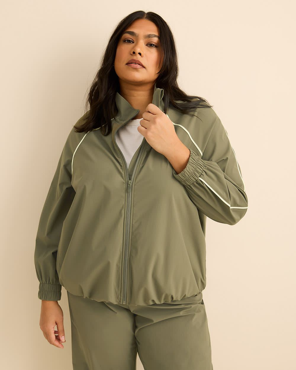 Bougez avec plaisir grâce à cette veste de survêtement en tricot. Avec son tissu extensible, ses détails de passepoil et ses longues manches raglan, rien ne vous empêchera de bouger librement, avec attitude et style.