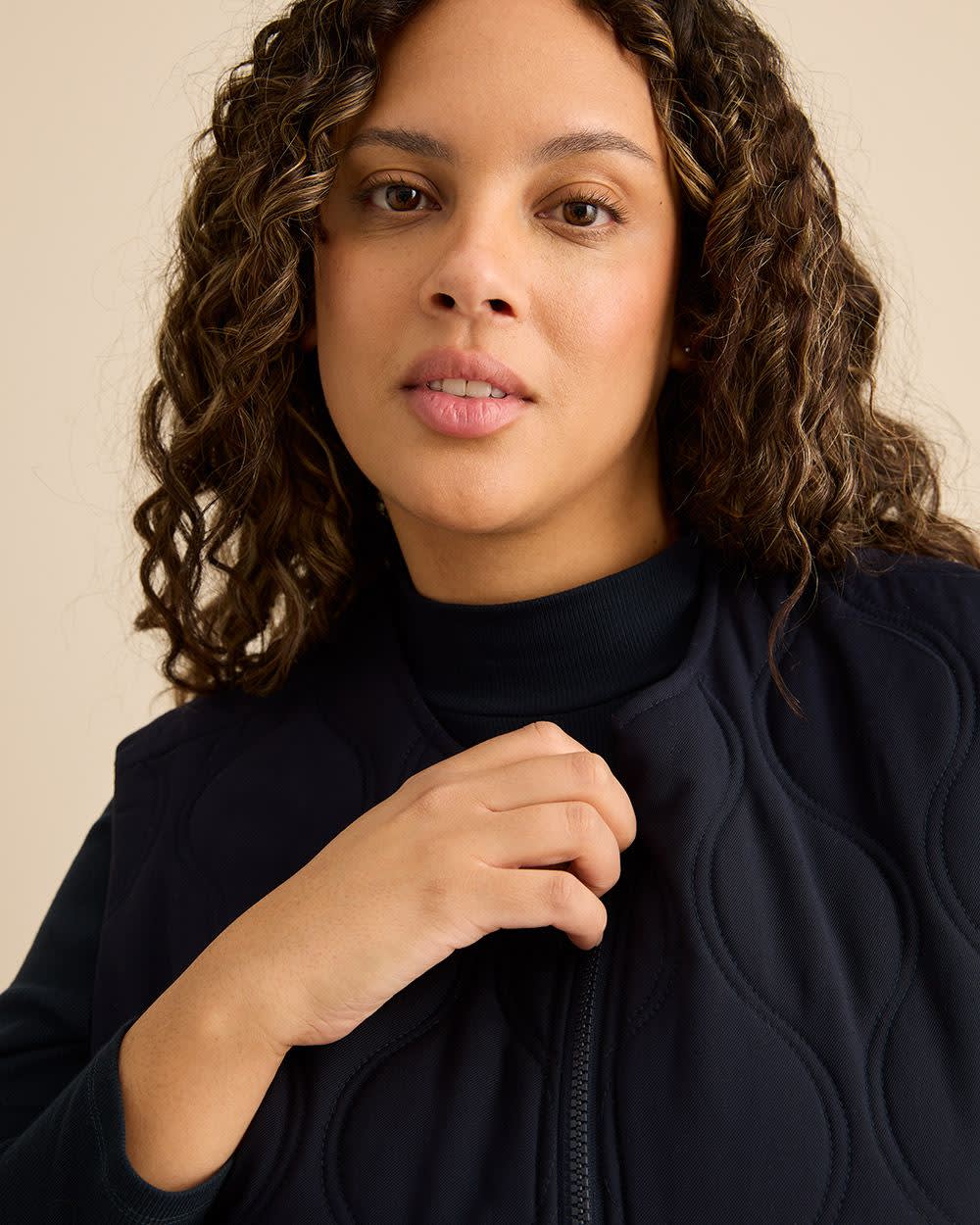 Ajoutez une touche de style et un peu de chaleur à toutes vos tenues grâce à cette veste matelassée taille plus tendance. Parfaite pour toutes vos activités extérieures ou faire des courses, elle vous donnera un look d'enfer lors de vos sorties tout en vous gardant au chaud grâce à son fini matelassé et rembourré.