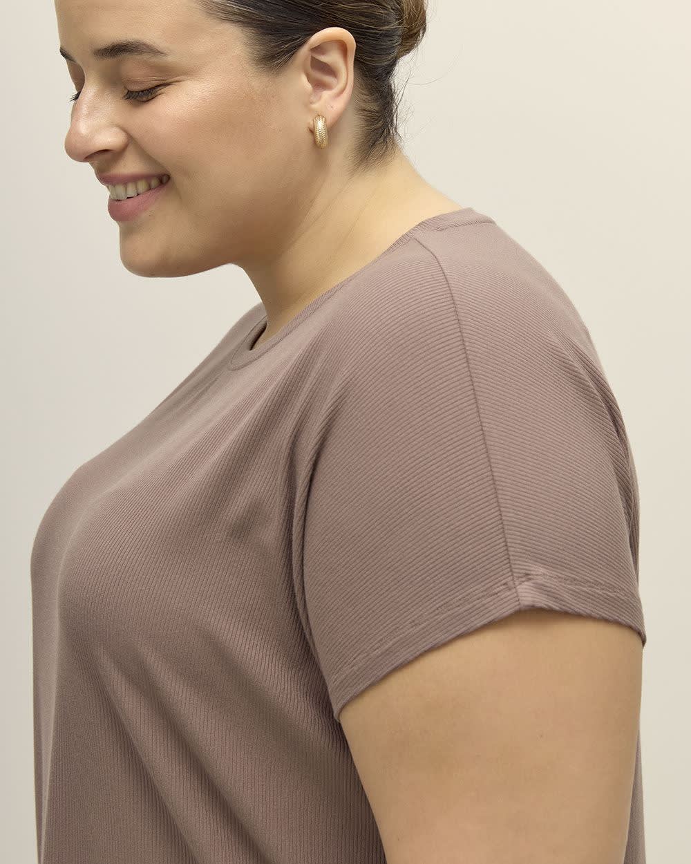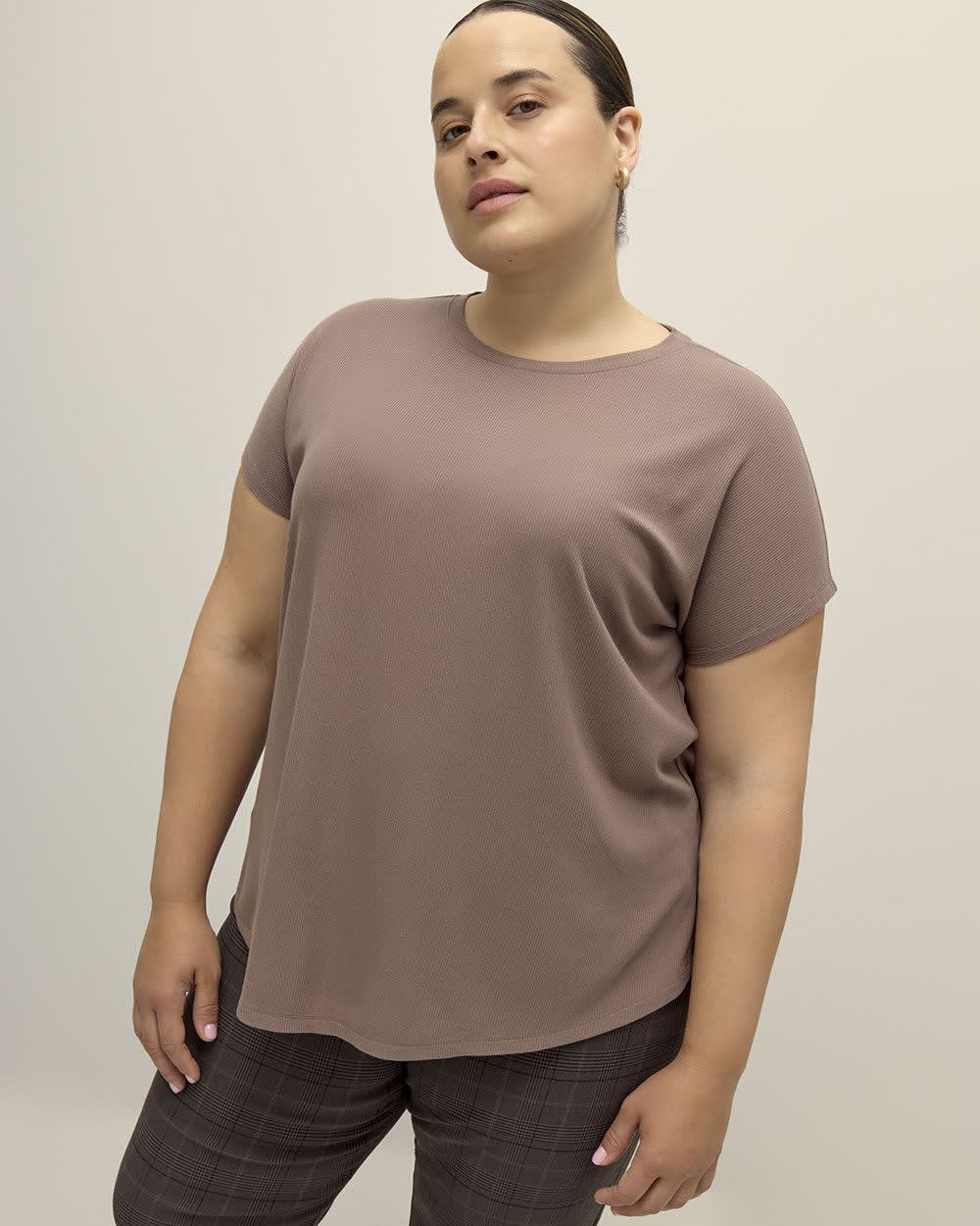 A modern fit for the modern women. This plus-size crewneck tee is fashioned in a slight A-line silhouette that flatters your curves in all the right places, with stylish extended sleeves and a trendy ribbed knit finish in stunning colours for all-day comfort and style.