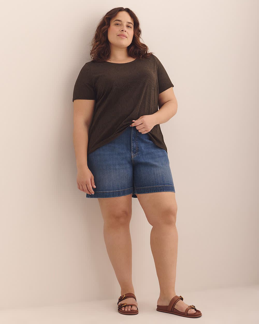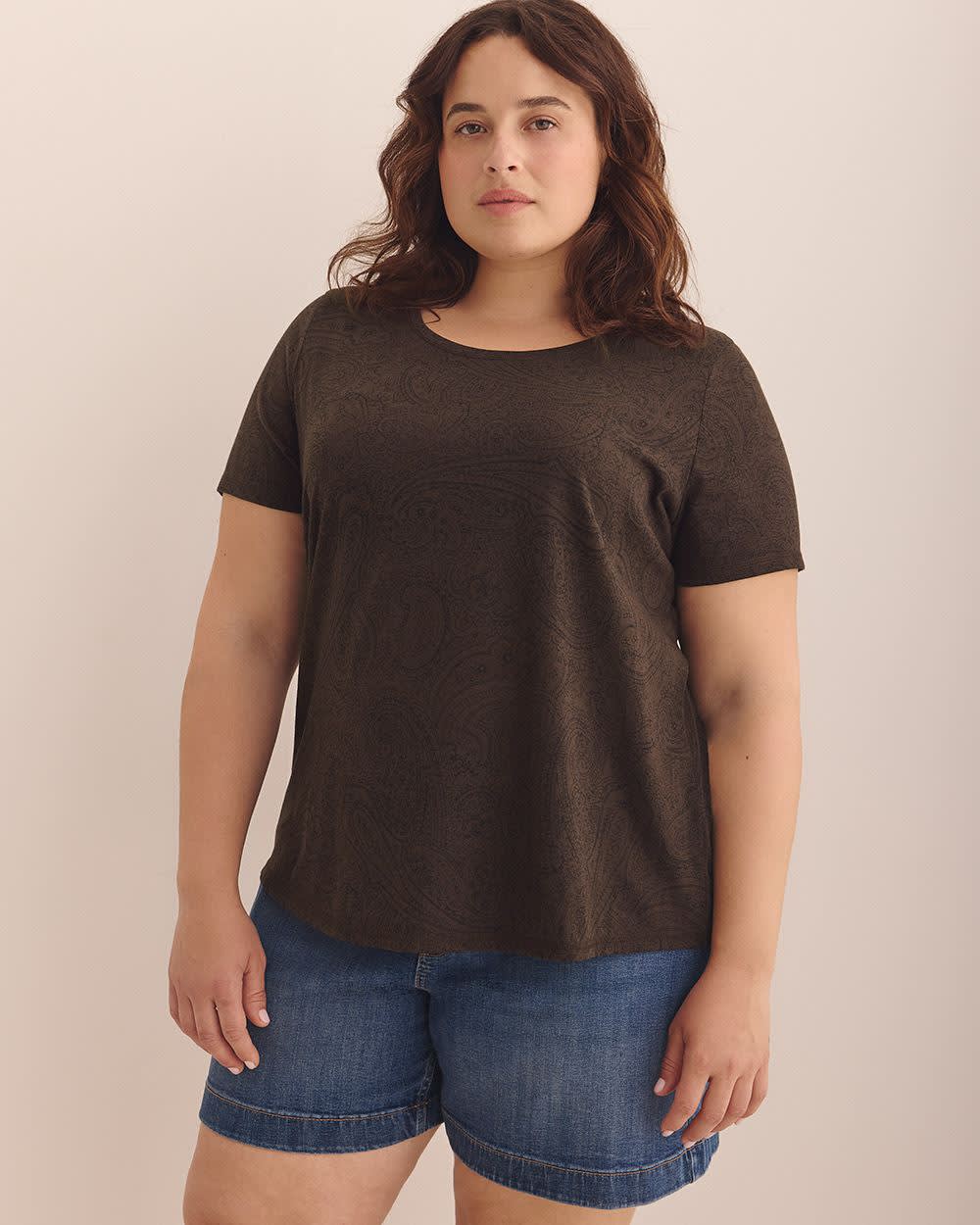 Designed in a soft knit and made in multiple hues, this plus-size short-sleeve tee is an everyday essential. We love it to get it in every colour!