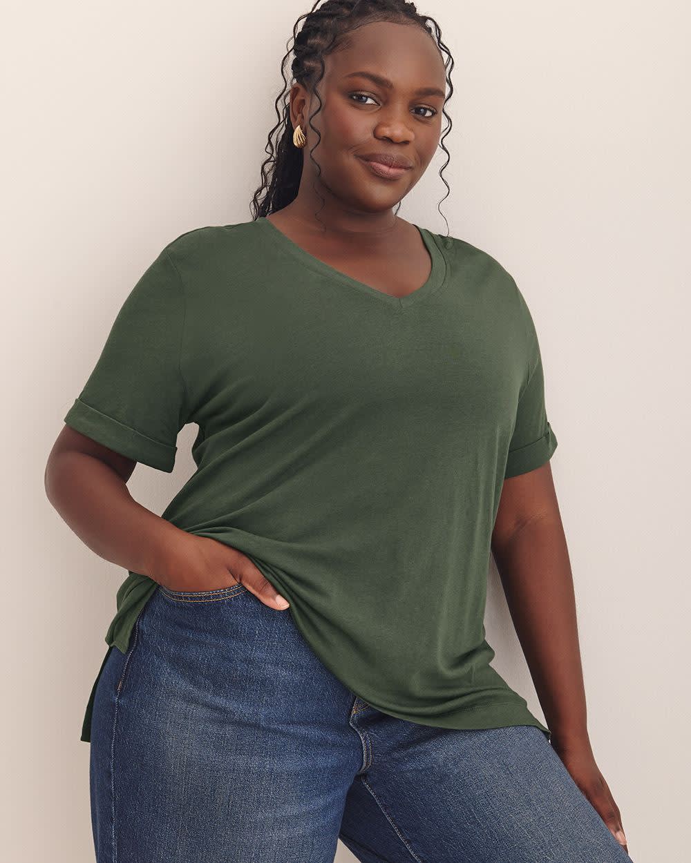 Boyfriend-Fit V-Neck T-Shirt - PENN. Essentials