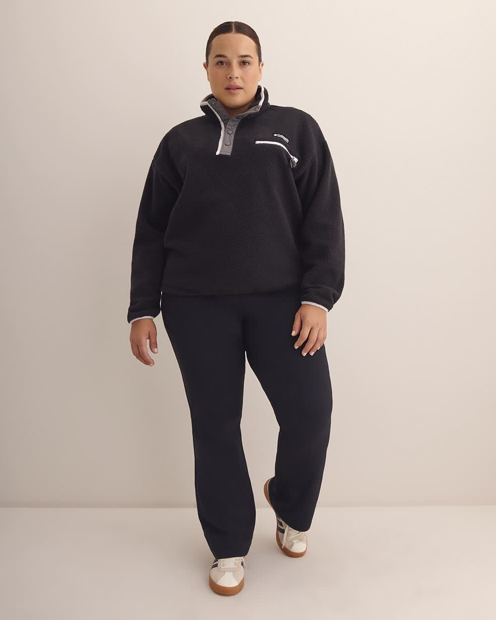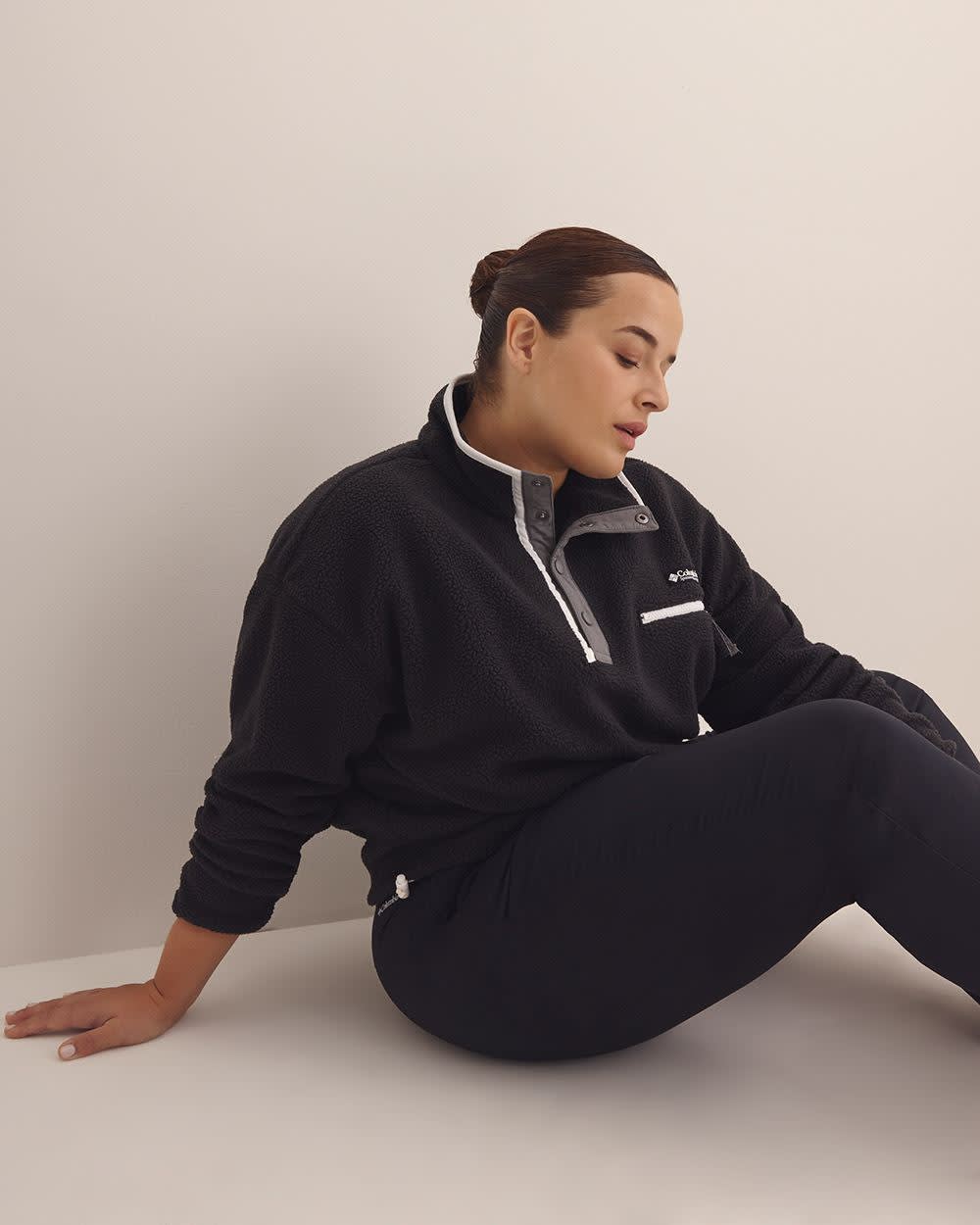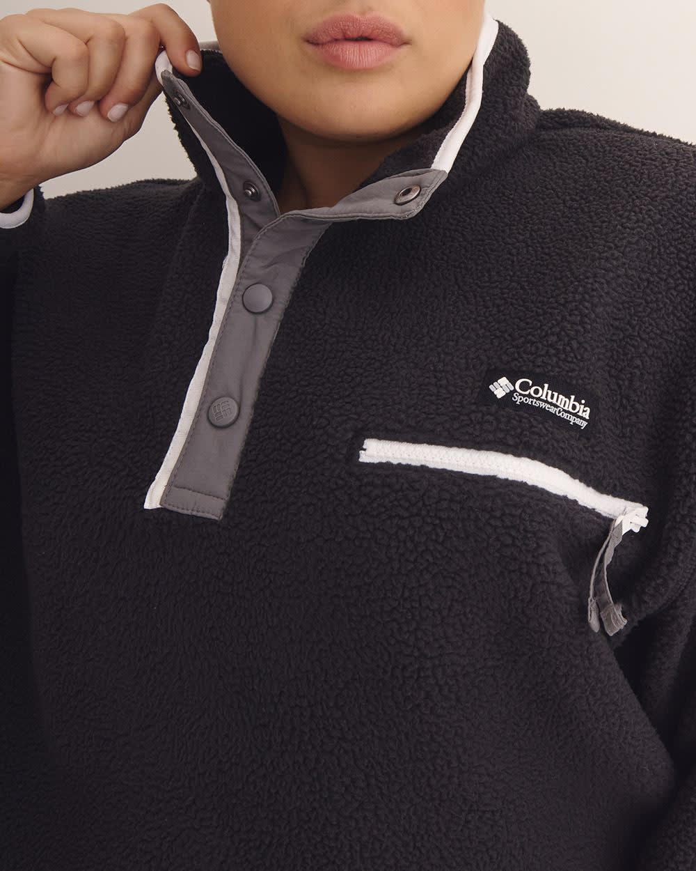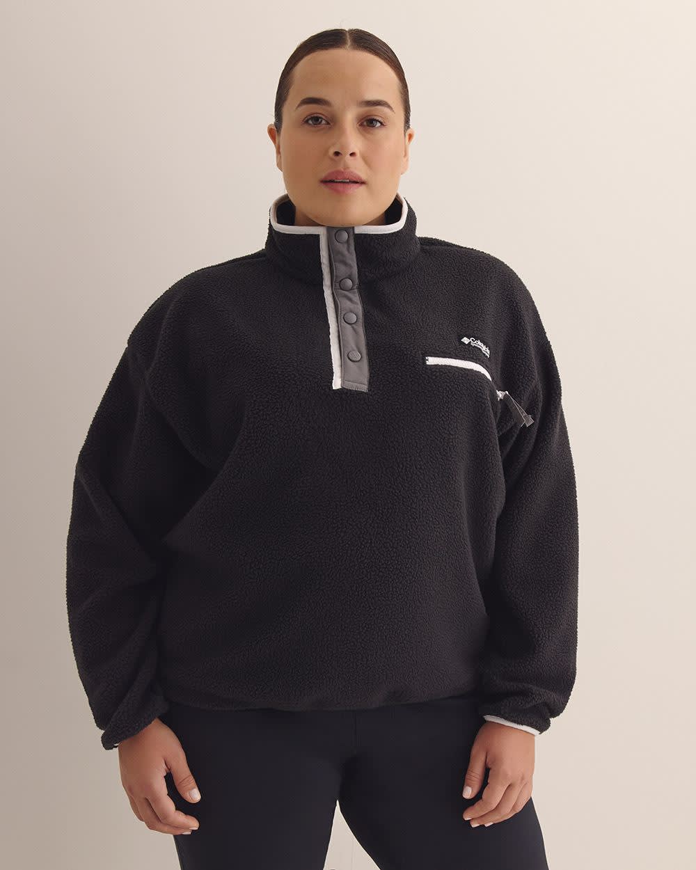 ONLINE EXCLUSIVE. An iconic fleece. Crafted of plush, super soft fleece to ward off chill, this plus-size cropped-length snap-front pullover from Columbia features handy details, such as a drawcord-djustable hem, a zippered chest pocket, and a sherpa fleece finish for adventures around town, camp, or the mountain.