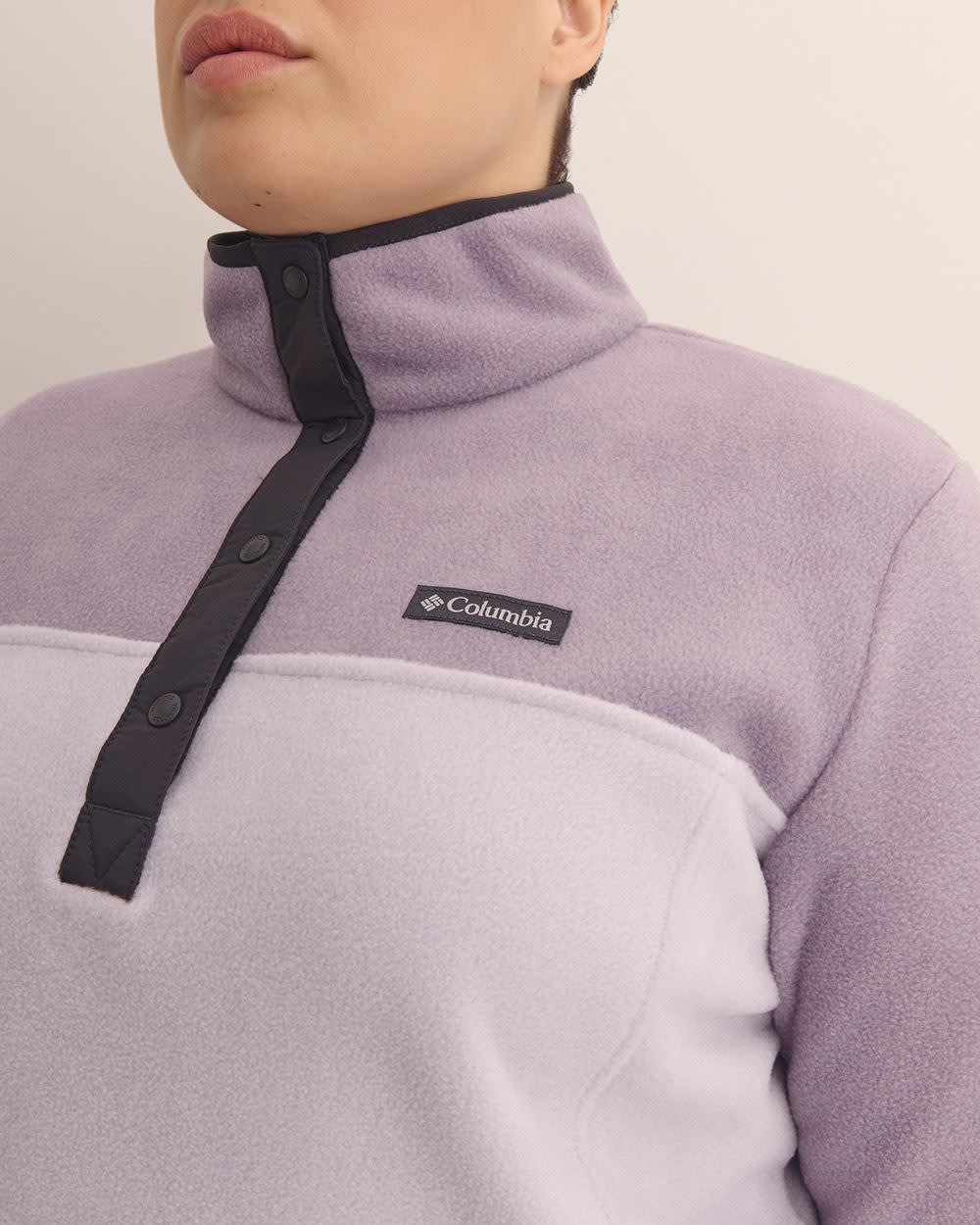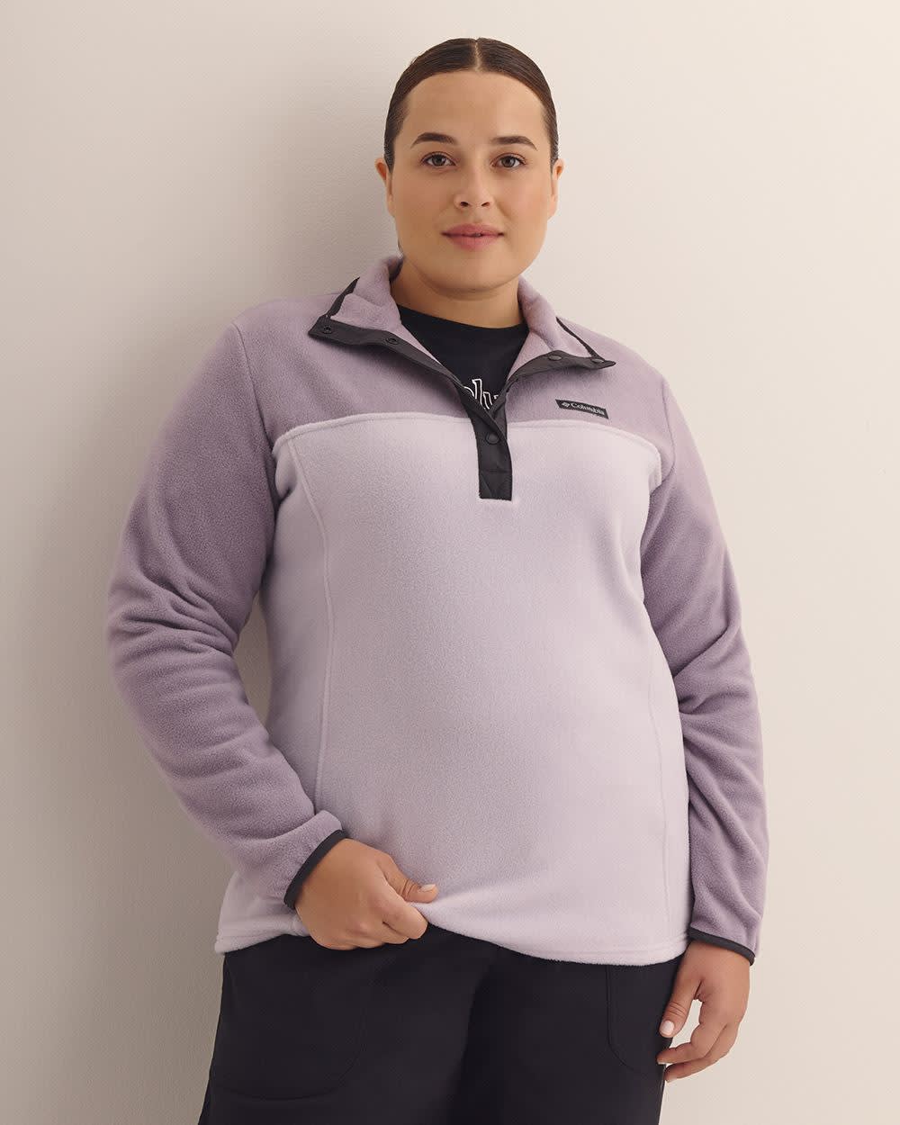 ONLINE EXCLUSIVE. A fresh look. A classic design. This plus-size half-snap pullover from Columbia is made of plush, lightweight fleece for breathable warmth with a bit of stretch for a supremely cozy feel and a stylish look.