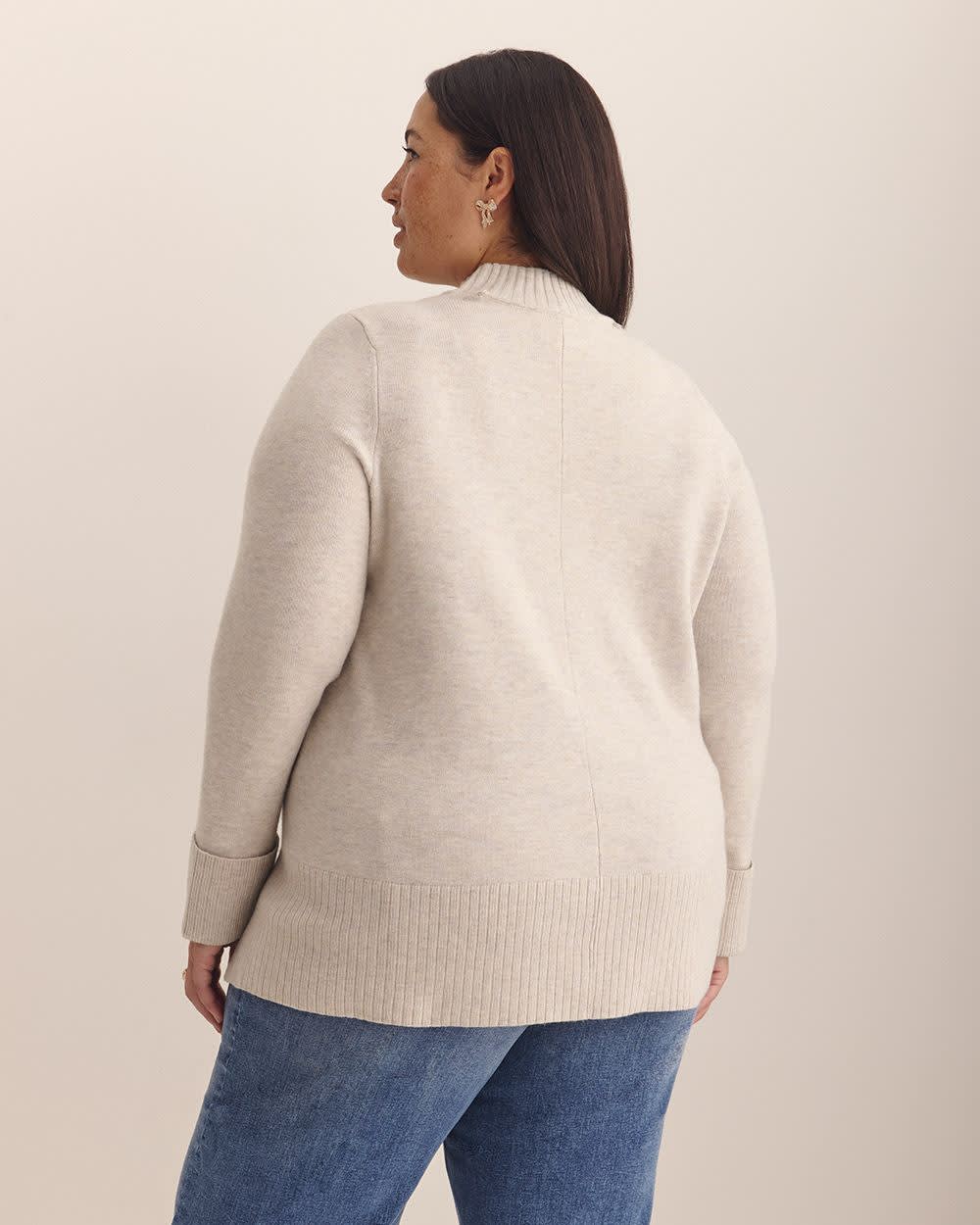 Wrap up in cozy style with this plus-size knit scarf sweater. Featuring long sleeves a ribbed crewneck, and a detachable scarf, it's a versatile piece that pairs comfort with effortless polish.