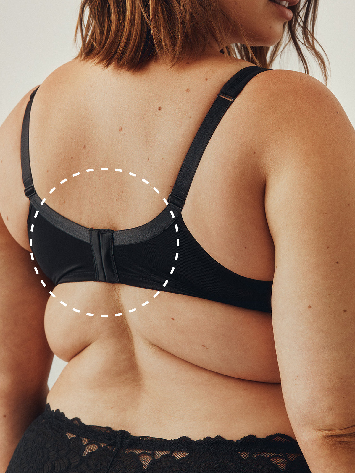 Start by clasping your bra on the loosest hook. Over time, as it stretches out, you can continue to tighten it for the perfect fit.