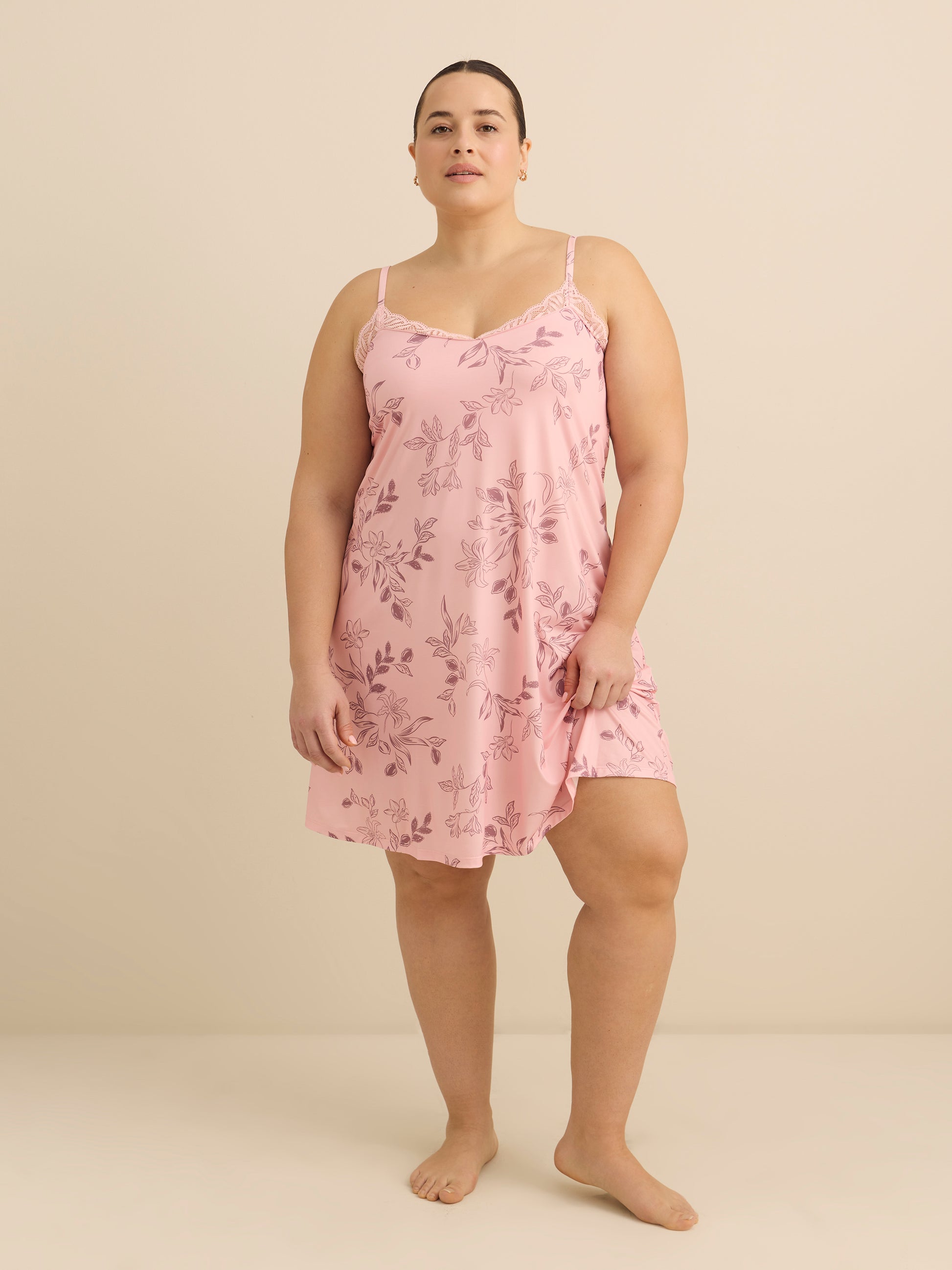 Soft, feminine, and effortlessly elegant. This plus-size sleeveless satin nightgown combines delicate lace details with built-in support for a flattering, comfortable fit. Designed to make you feel beautiful, night after night.