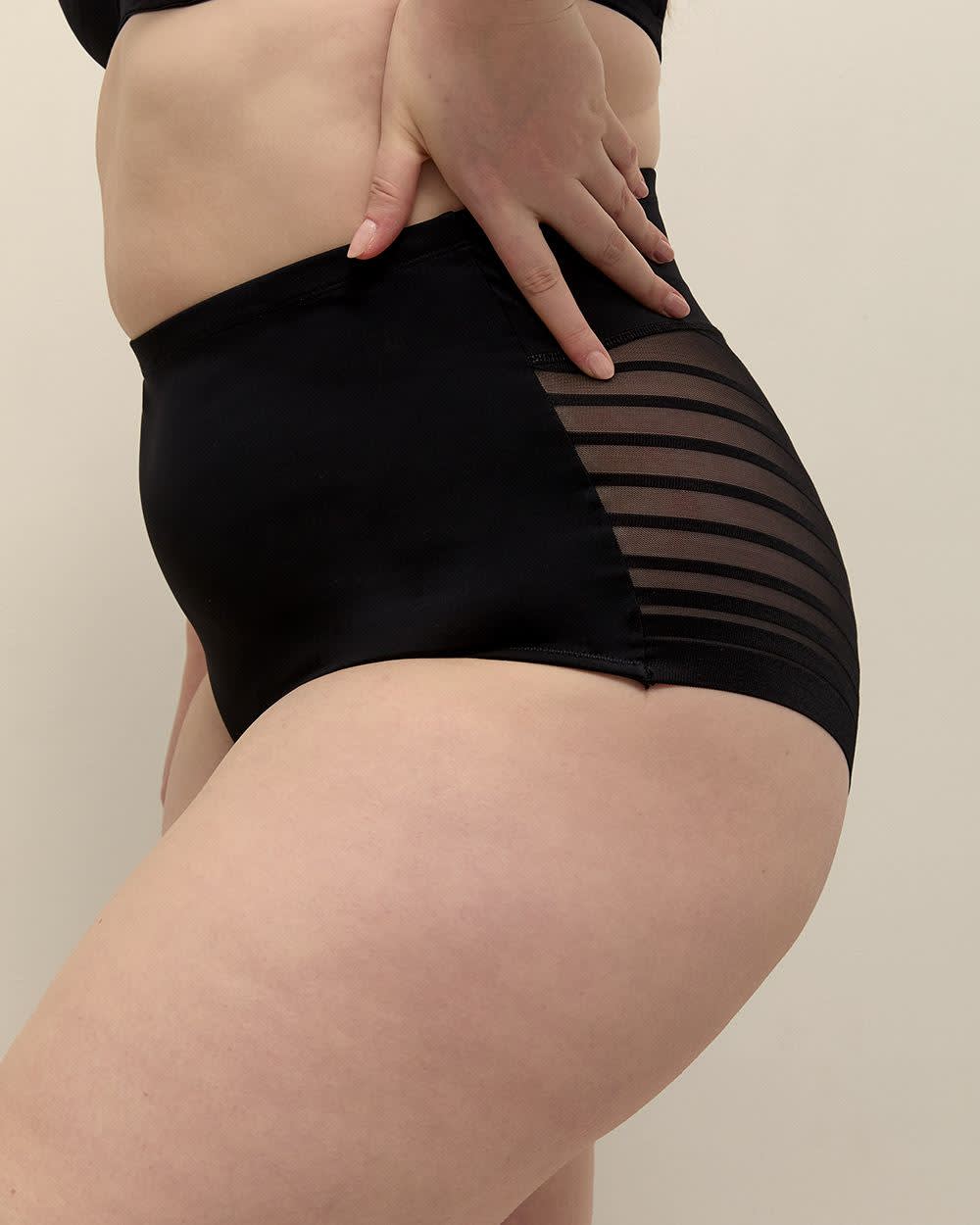 High-Waisted Cincher Brief with Striped Mesh - ti Voglio