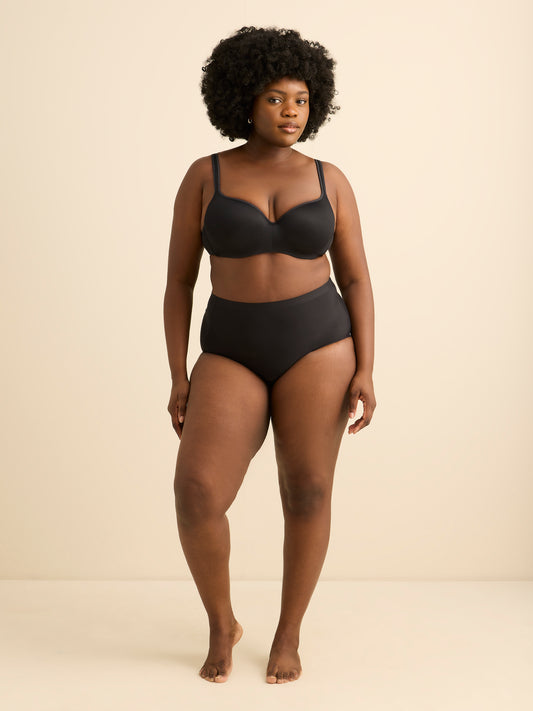 Designed for reliable protection and all-day comfort, this plus-size KNIX panty sits at the natural waistline and offers medium bum coverage. Its patented bonded edges help prevent side leaks, while its absorbent design holds up to 4 super tampons' worth of liquid, perfect for heavy flow days, overnight protection, and light bladder leaks. Made from KNIX's signature buttery-soft fabric with a wide, comfortable waistband, it can be worn on its own or layered under your favourite pajamas for extra peace of mind.