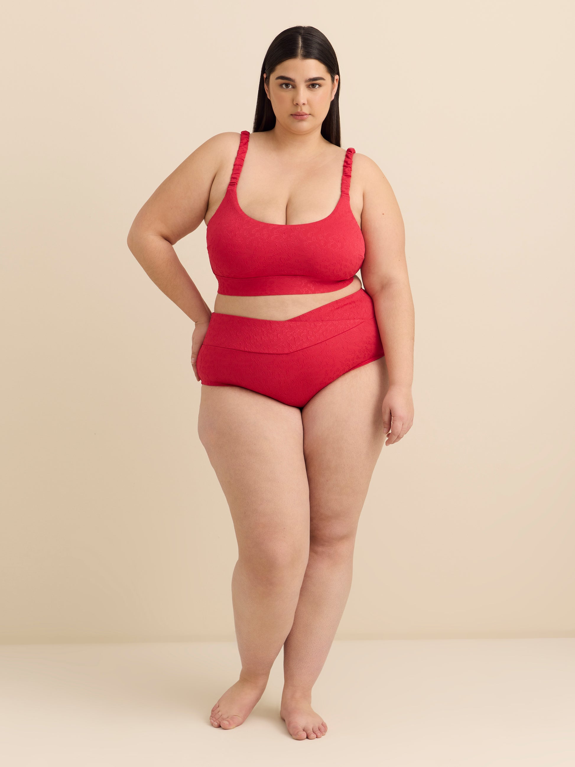 Crafted from a soft, textured fabric, this plus-size high-waist swim brief is an everyday essential. Designed for comfort and coverage, it features a flattering criss-cross waistband and a fully lined finish for a polished, stylish touch.